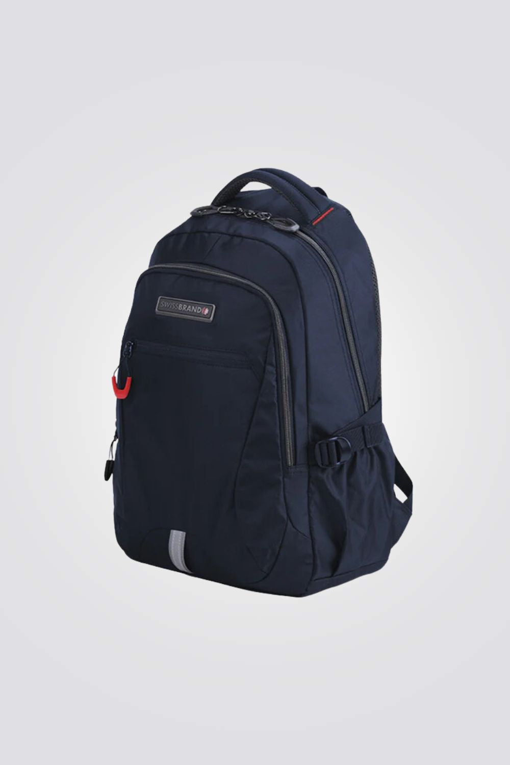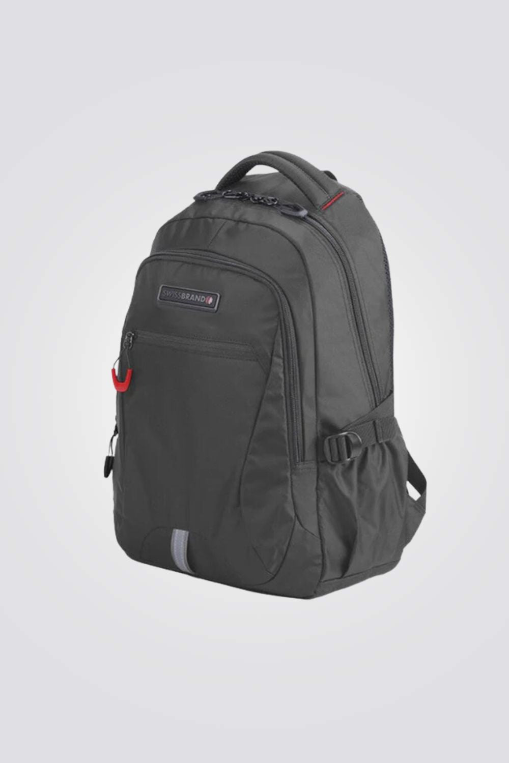 SwissBrand BURFORD – תיק גב למחשב נייד של סוויסברנד (מותג שוויצרי איכותי) – תיק מאסיבי וחזק, מרובה תאים, עם גב אורטופדי ותא יעודי מרופד למחשב נייד עד 15.6" + כיס ייעודי לטבלט עד 10" כולל רצועת הלבשה על ידית מזוודה, נהדר לנסיעות עסקים וכן כתיק גב לסטודנט ולמשרד.