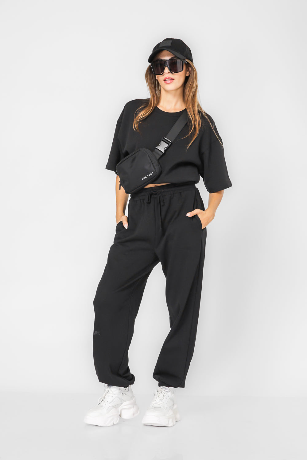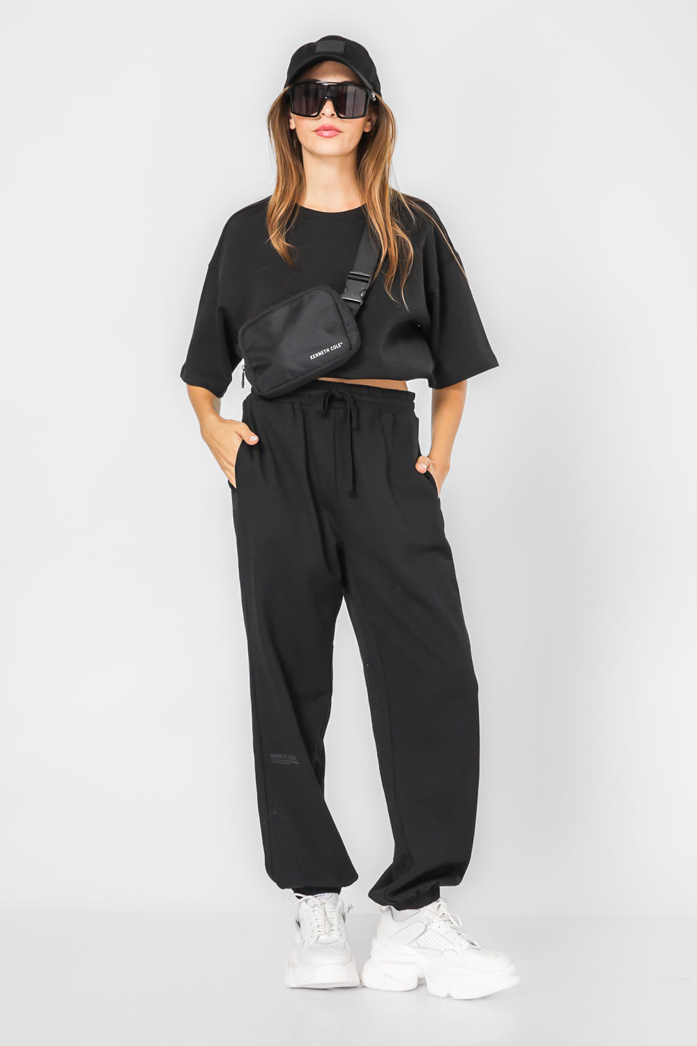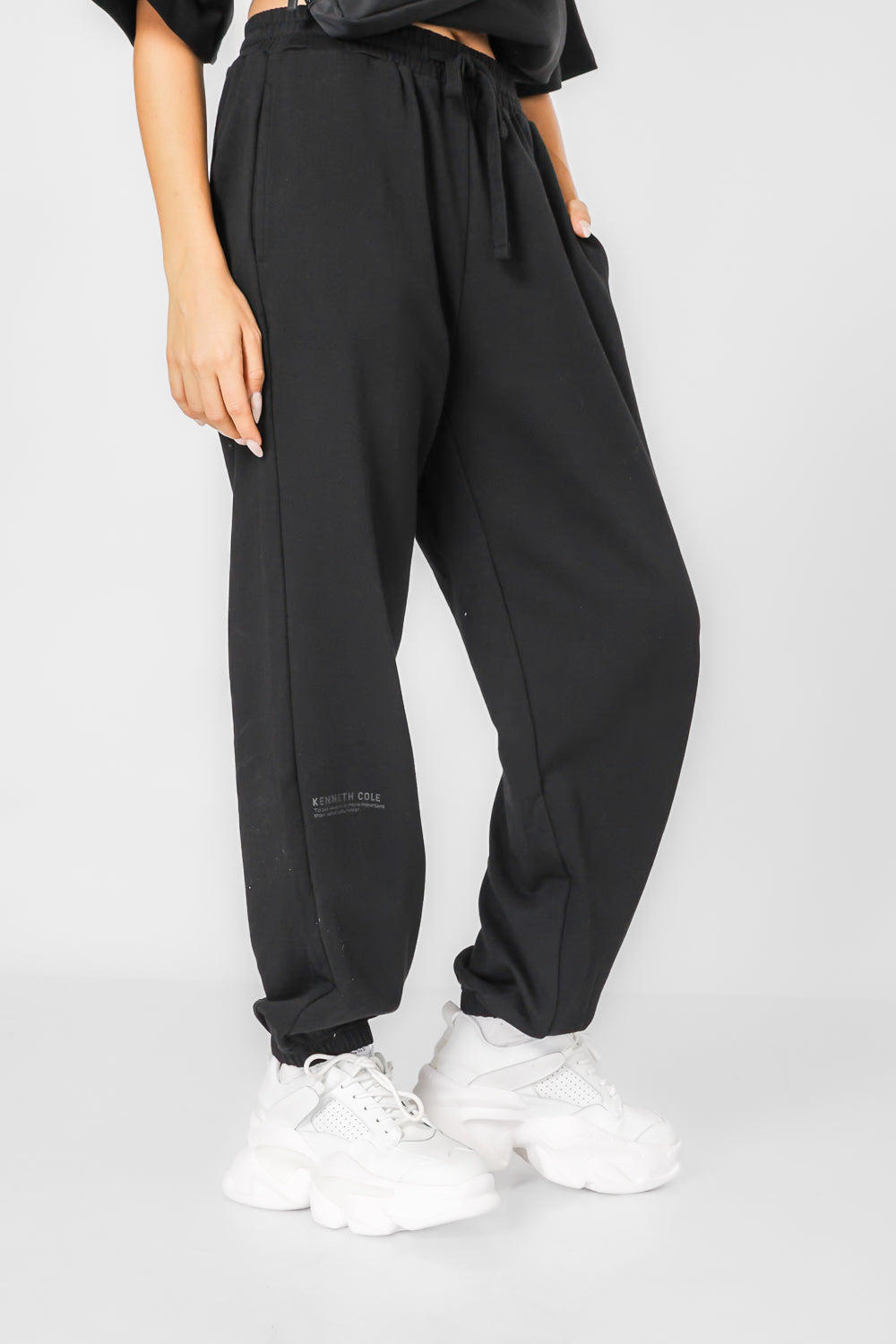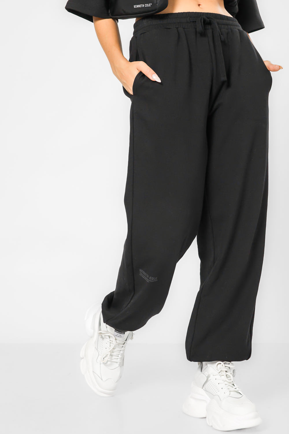 מכנסי ג'וגר לנשים מבית המותג היוקרתי KENNETH COLE, בצבע שחור , עם כיסים צדדיים, גומי בקו המותניים והרגליים ושרוך קשירה קידמי, נוחים ומתאימים ללוקים יום יומיים.
