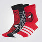מארז 3 זוגות גרביים מבית המותג ADIDAS בצבע אדום ושחור בהשראת ספיידרמן של מארוול מדיסני, הגרביים מגיעות מכותנה רכה ונמתחת.