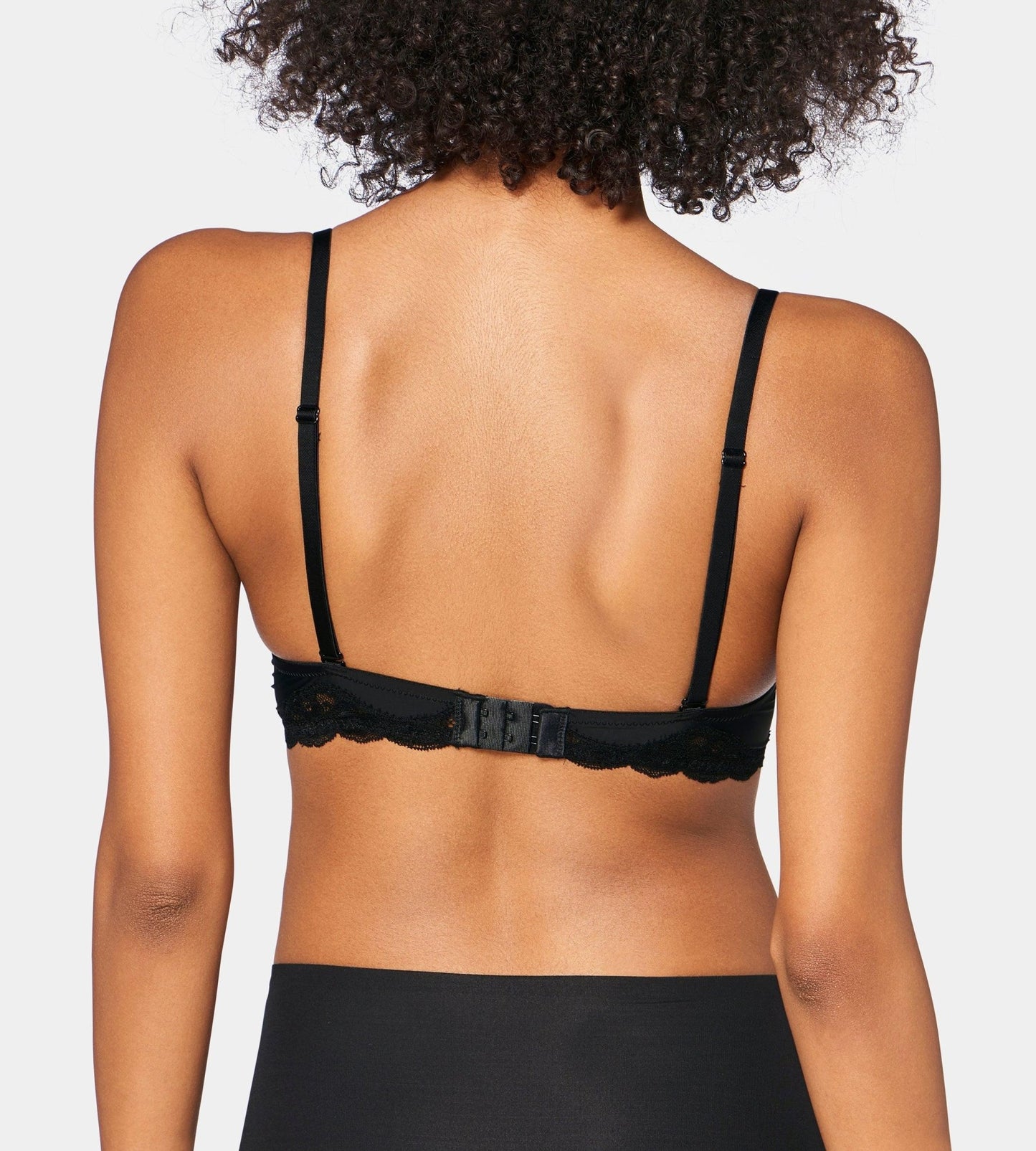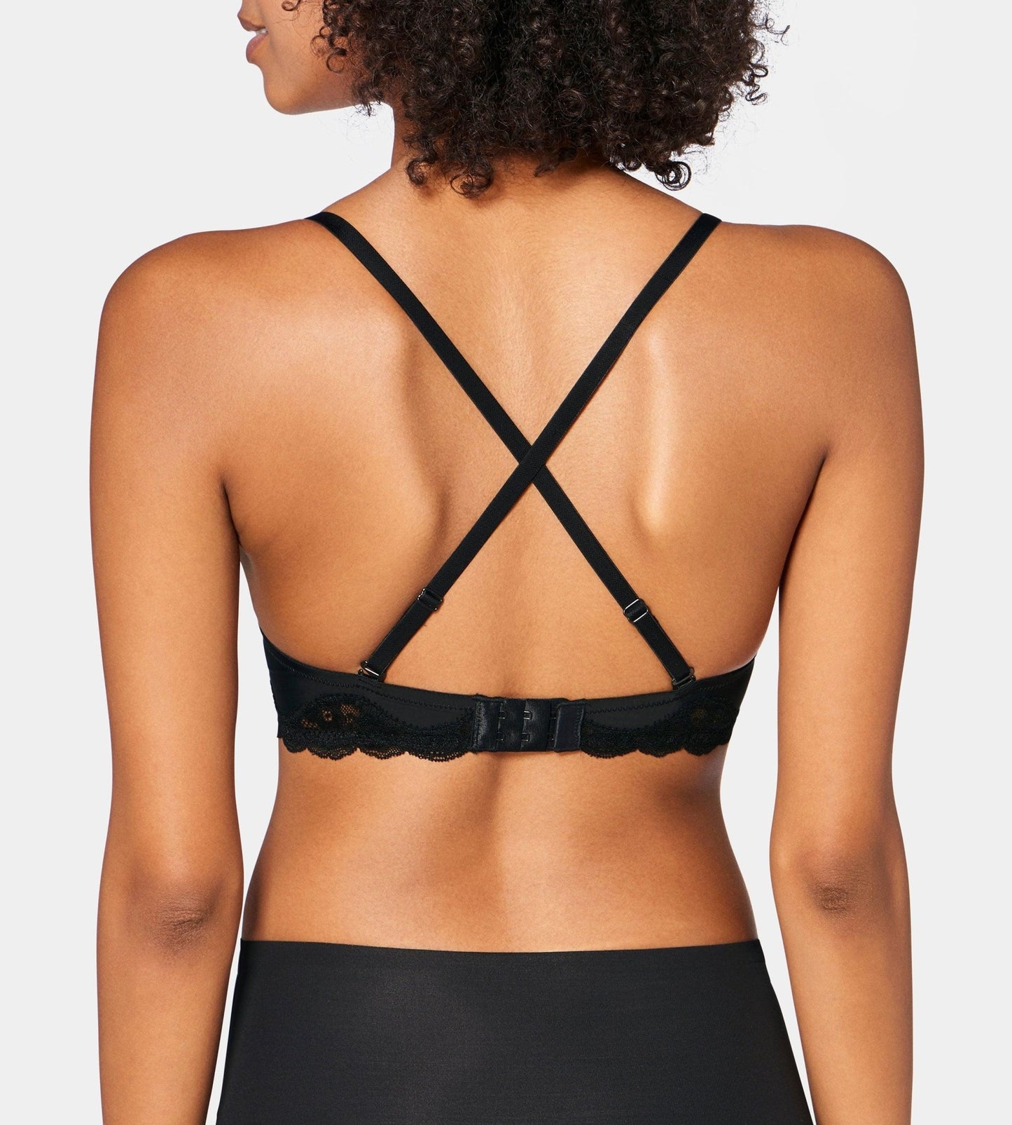 חזייה מיקרופייבר מרופדת, עם תפרים קדמיים מעוטרים בתחרה.בעלת כתפיות דקות ונשלפות הניתנות לשינוי למספר אפשרויות של X וקולר.