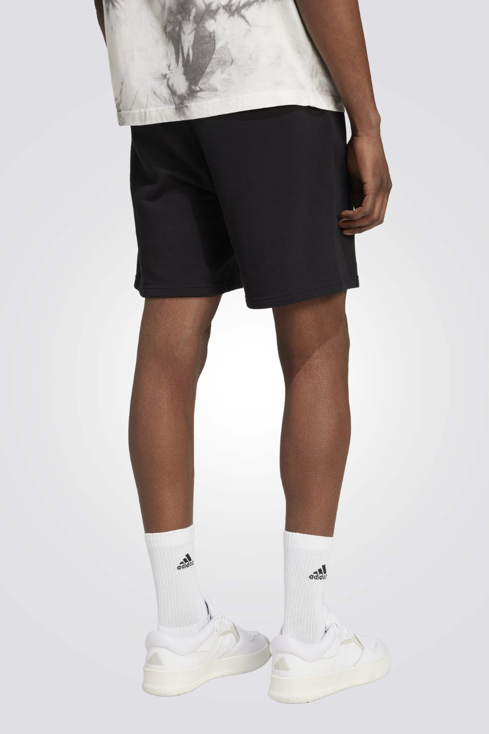 מכנס קצר מבית המותג ADIDAS לגברים בצבע שחור, מבד קליל ונוח, בעל גומי באיזור המותניים ושרוך לקשירה וסמל המותג בצבע שחור מקדימה.