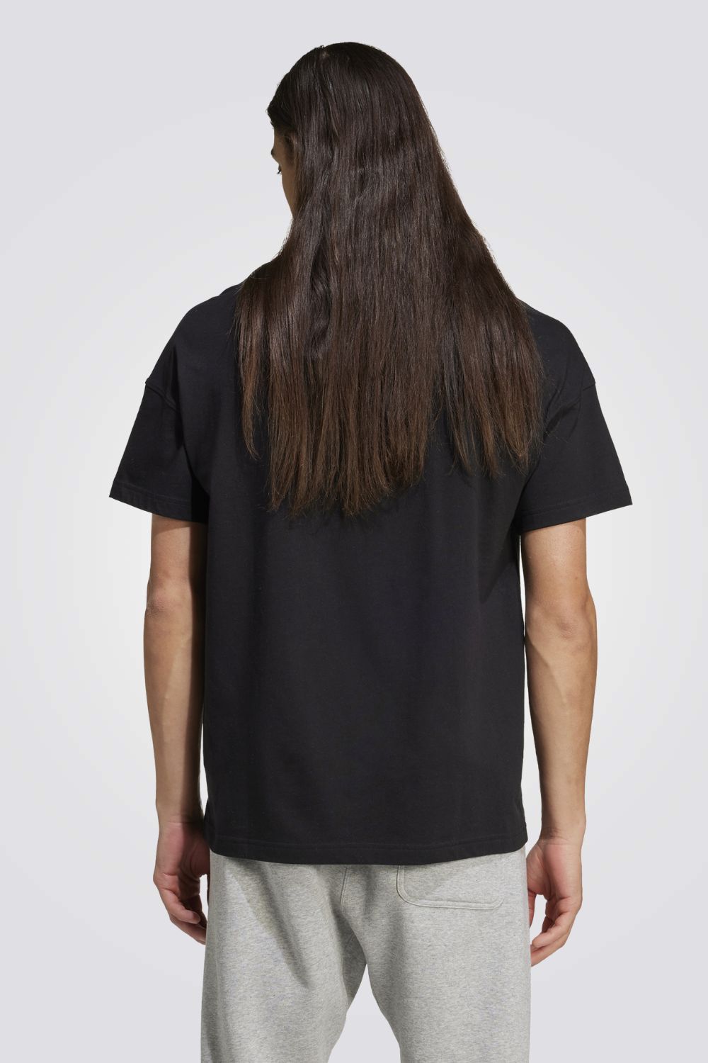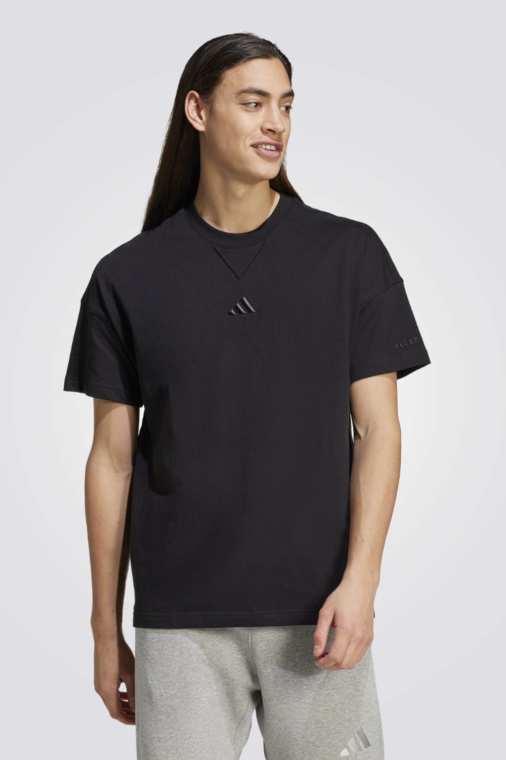טי שרט קצרה מבית המותג ADIDAS לגברים בצבע שחור, בעלת שרוולים קצרים, מבד קליל ורפוי, צווארון עגול וסמל המותג בשחור רקום מקדימה.