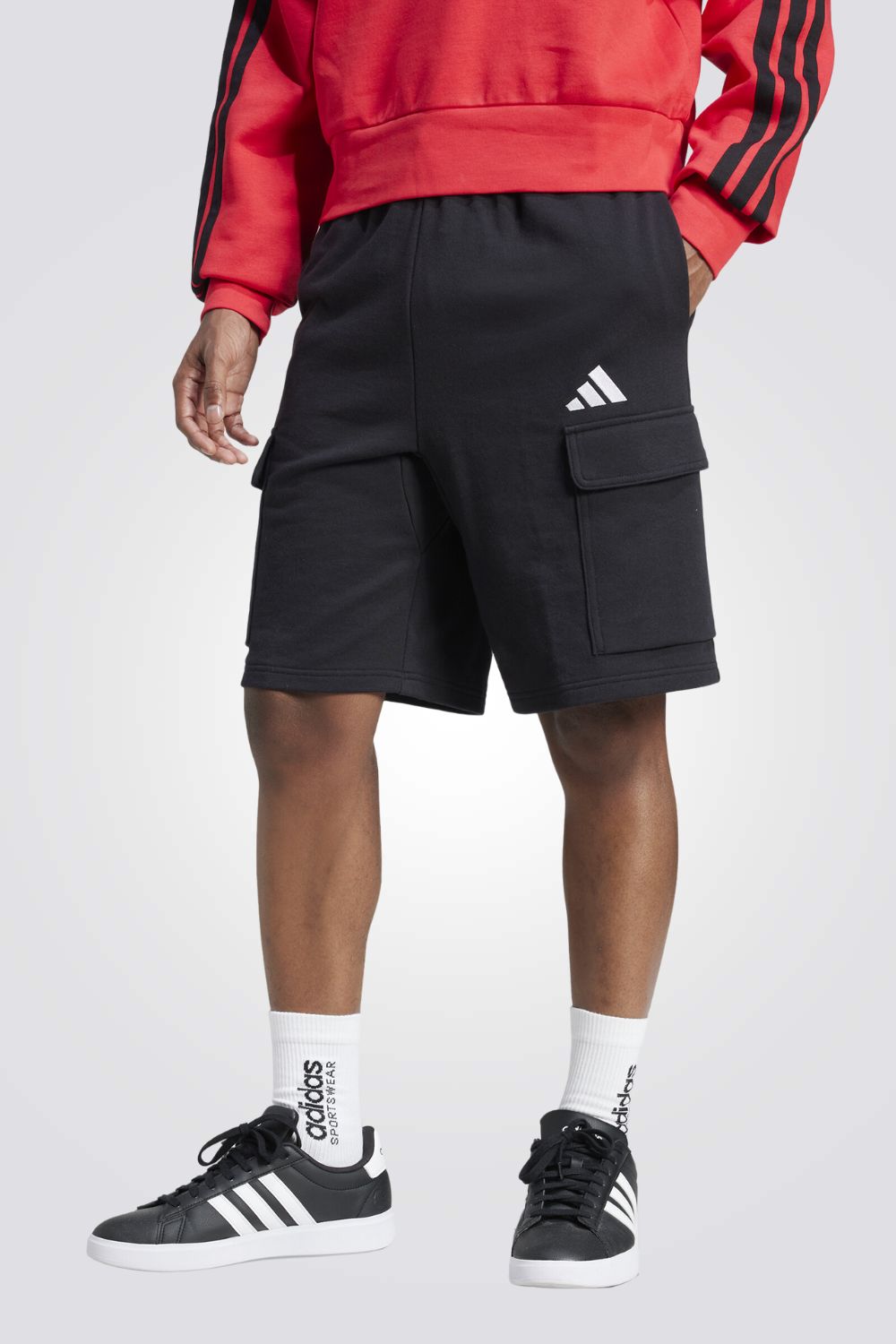 מכנס קצר מבית המותג ADIDAS לגברים בצבע שחור, בעל גומי אלסטי באיזור המותניים ושרוך לקשירה, שני כיסים בצידי המכנס ולוגו המותג בלבן בצד במכנס.