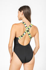 בגד ים שלם לנשים LOGO TAPE-CROSSBACK בצבע שחור