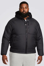 מעיל לגברים מבית המותג NIKE, בצבע שחור, מחמם ונעים ,עם כובע, סגירת רוכסן ושני כיסים צדדיים.