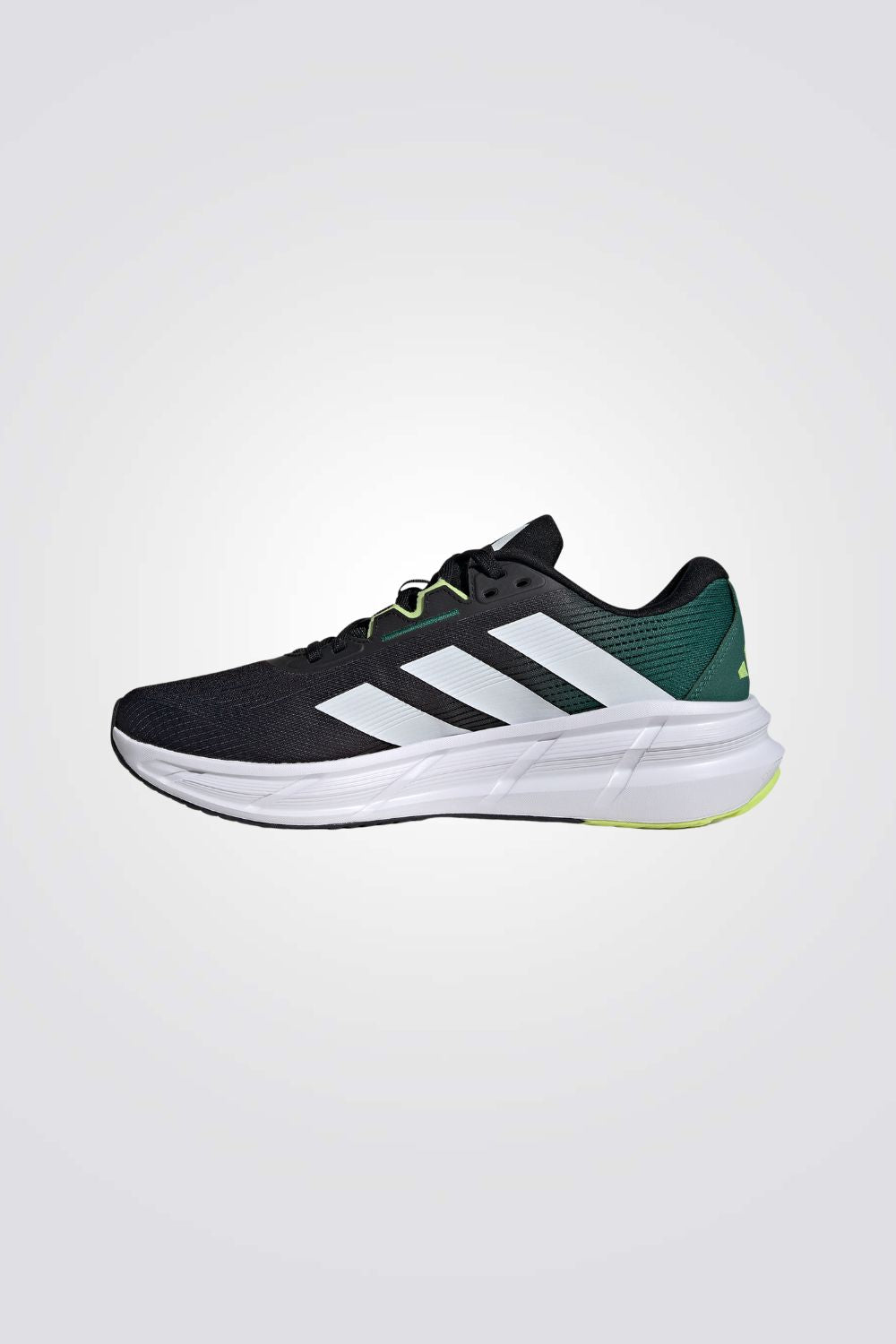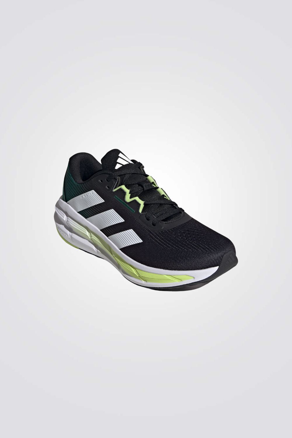 נעלי ספורט מבית המותג ADIDAS בצבעי שחור וירוק עם שרוכים, גפה רשת ובטנת טקסטיל, סוליה פנימית Bounce 2.0 וסוליה חיצונית מגומי המספקת נוחות מירבית.