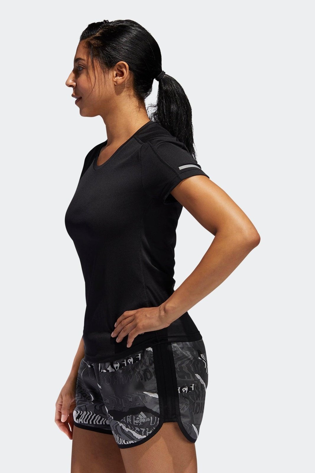 טישרט של המותג ADIDAS בשילוב רשת ועיטור מחזיר אור. מיוצרת מתוכן אשפה ממוחזר כחלק מהשאיפה של אדידס למחזור פסולת פלסטיק. בד הטישרט מנדף זיעה, רך ונעים על הגוף.