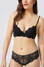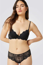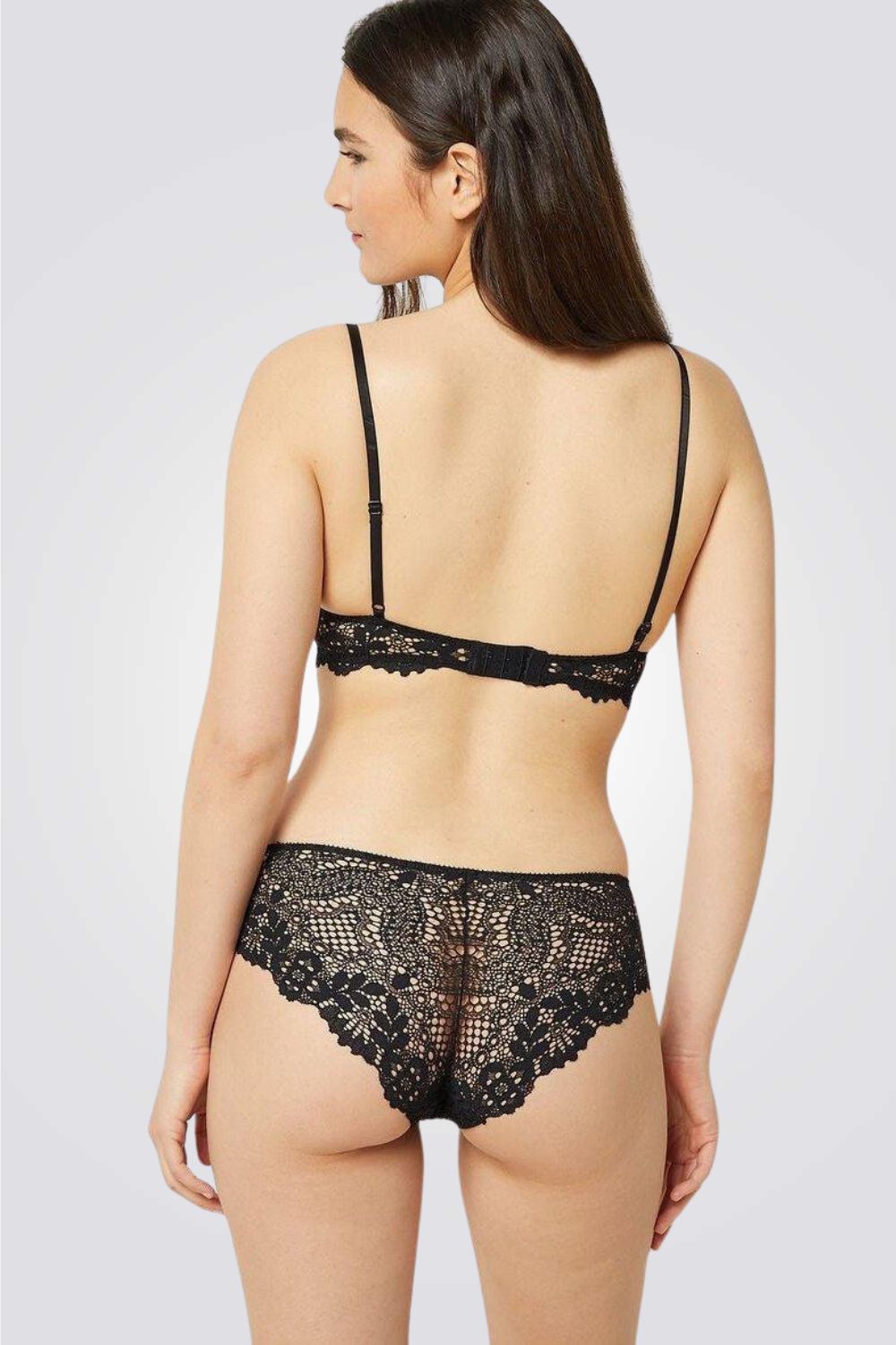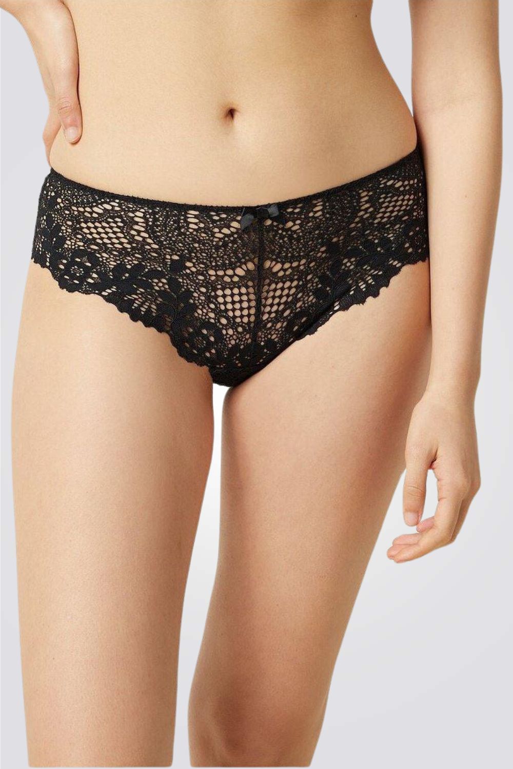 תחתוני תחרה מבית המותג הצרפתי ETAM בגזרת בוקסרון עם מותן נמוכה ושוליים רחבים, בדוגמה פרחונית עדינה ועיטור פפיון במרכז.
