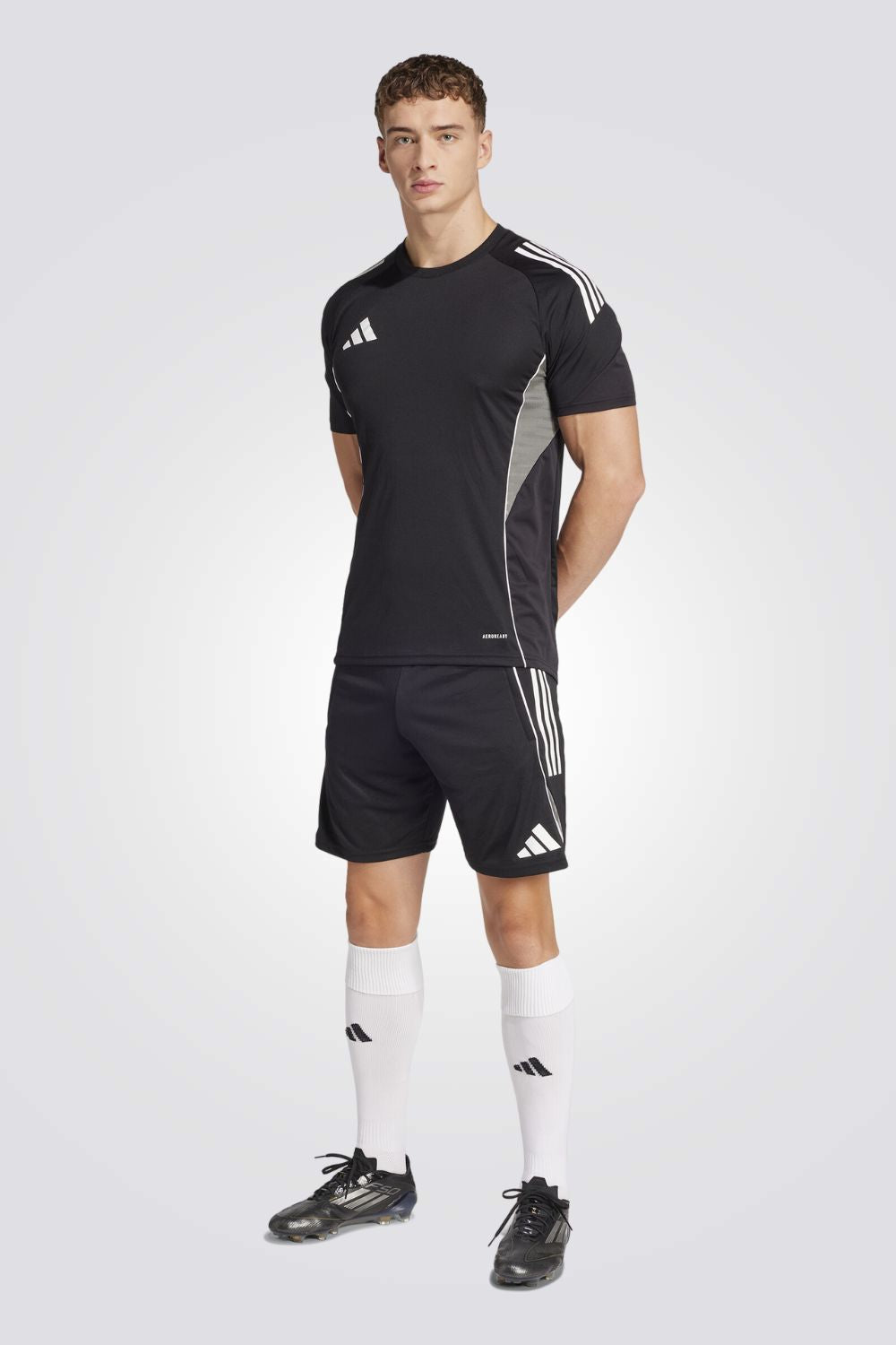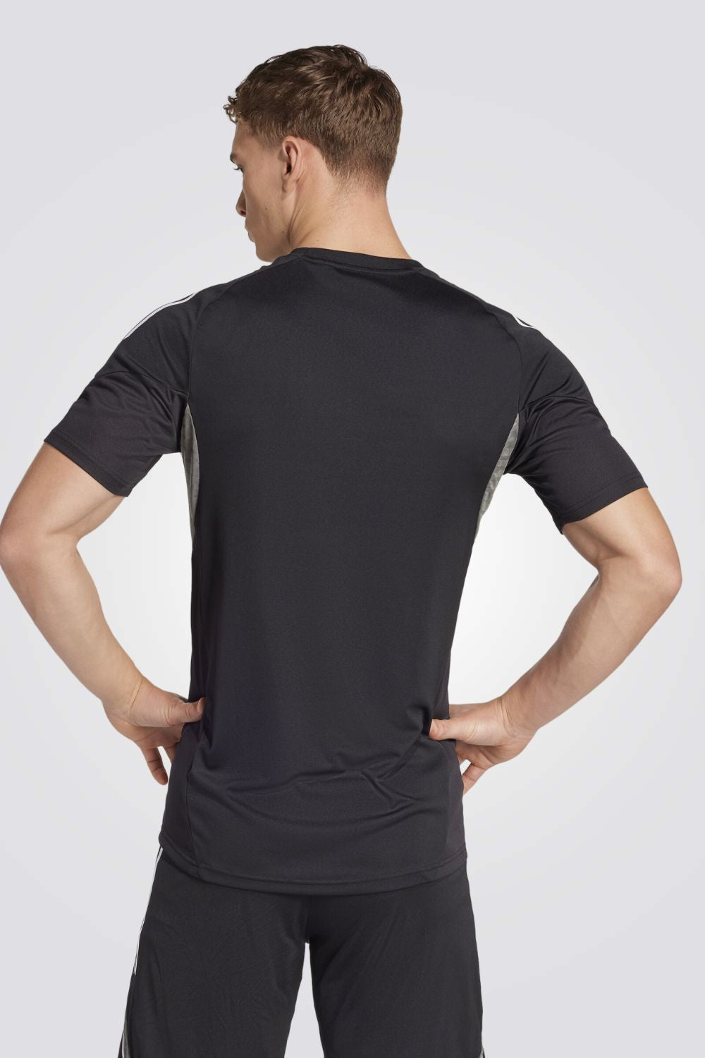 חולצת ספורט מבית המותג ADIDAS לגברים בצבע שחור, מבד קליל, צווארון עגול, סמל המותג בקידמת החולצה ועשויה בטכנולוגיה Aeroready מנדף זיעה.