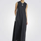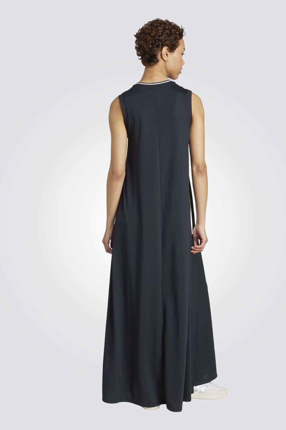 שמלת מקסי מבית המותג ADIDAS לנשים בצבע שחור, בעלת צווארון משולש בצבעים שחור ולבן ושני כיסים בצידי השימלה.