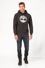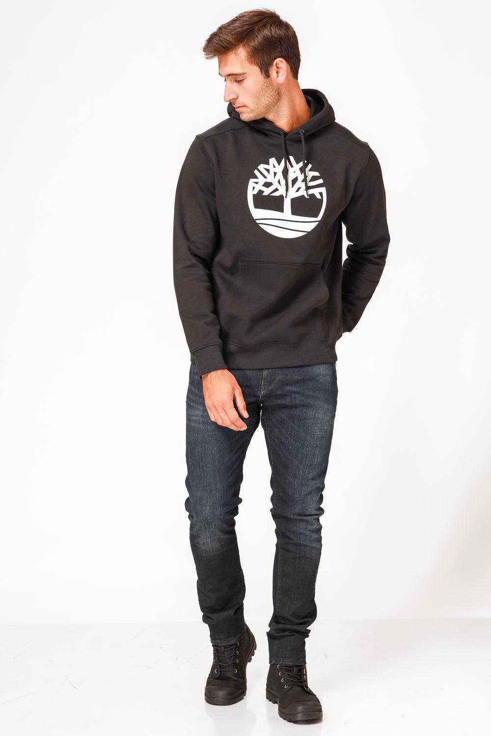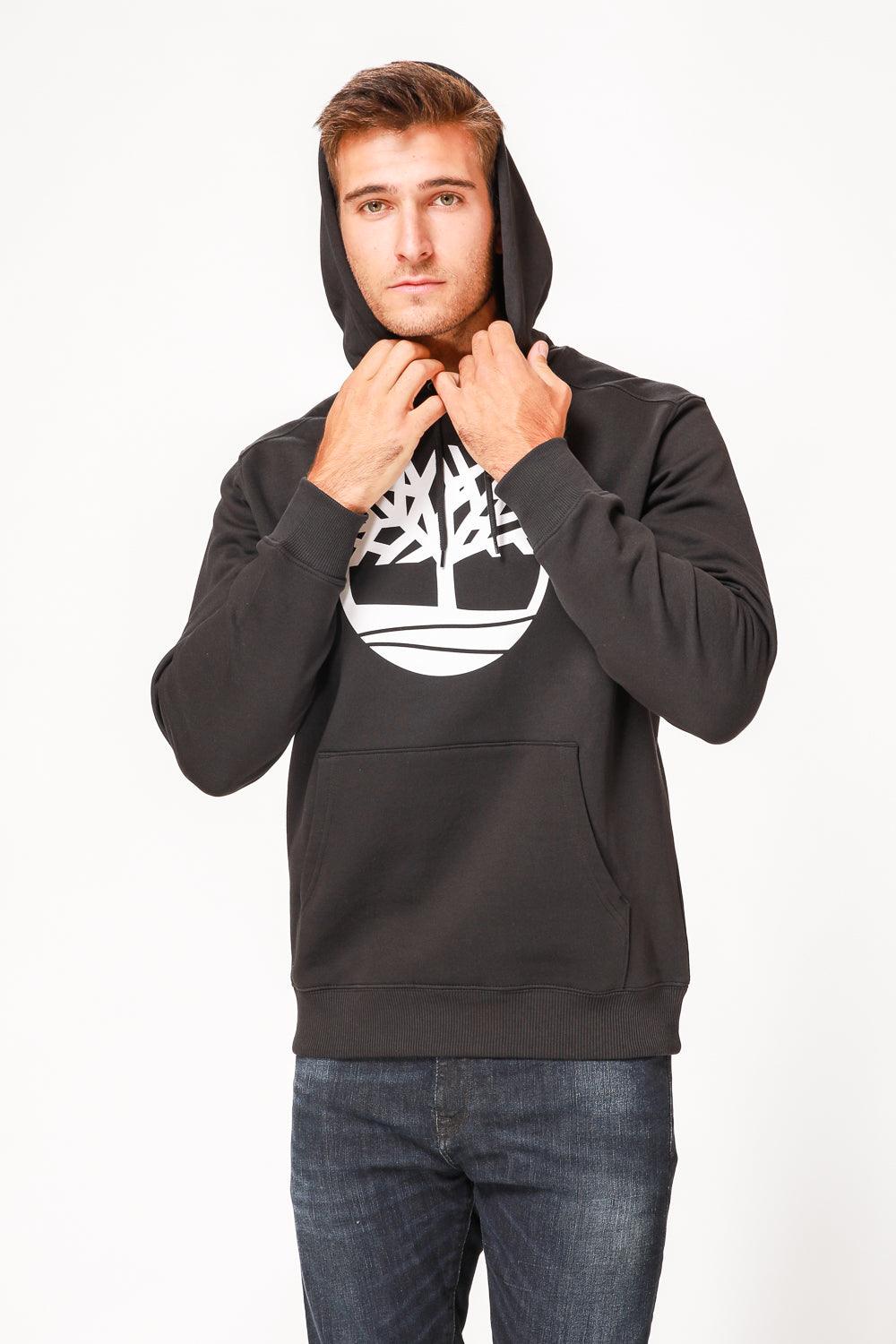 סווטשירט שחור עם כובע קפוצ’ון והדפס לוגו עץ