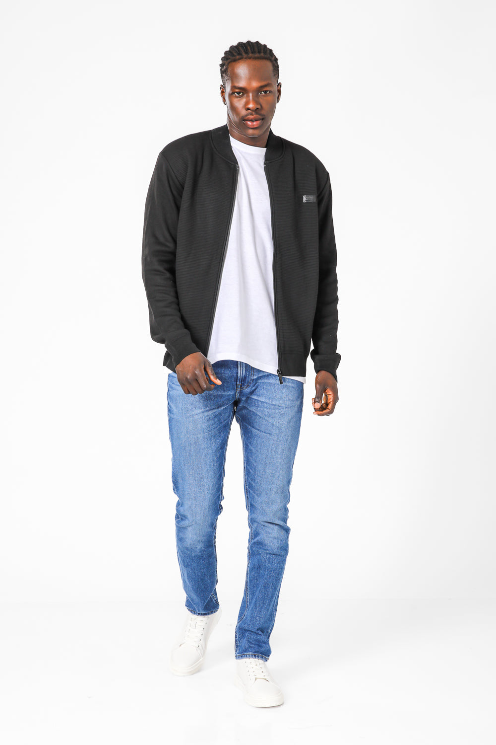 ג'קט אופנתי בצבע שחור עם צווארון V ושרוולים ארוכים מבית המותג SCORCHER.