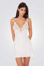 כותונת סאטן לבנה מבית המותג הצרפתי ETAM, עשויה בד עדין ונעים עם שכבת תחרה עדינה על איזור החזה, כתפיות מתכווננות וגף חשוף.