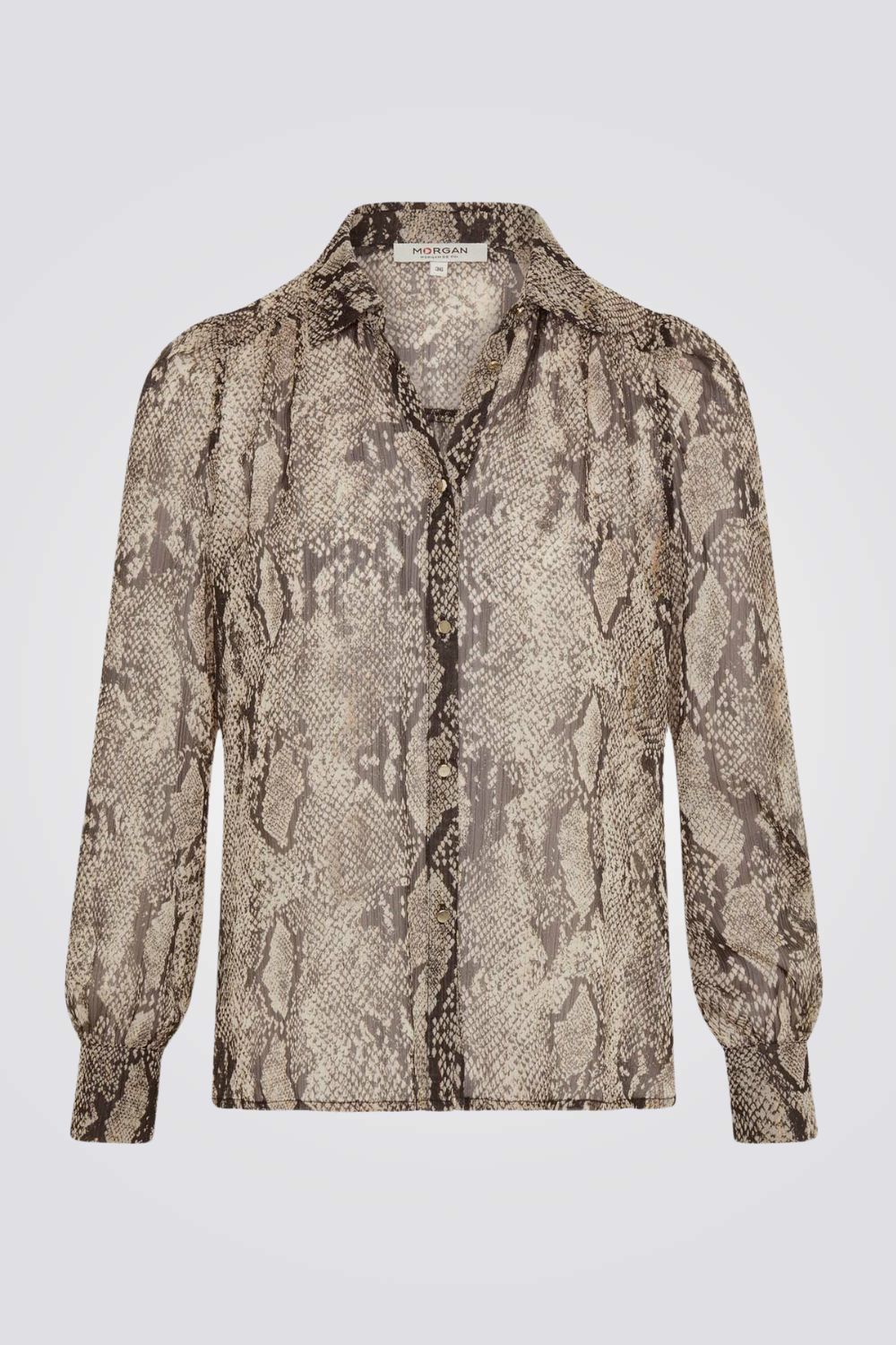 חולצה מכופתרת מבית המותג MORGAN, עם שרוולים ארוכים ובעלת הדפס נחש.