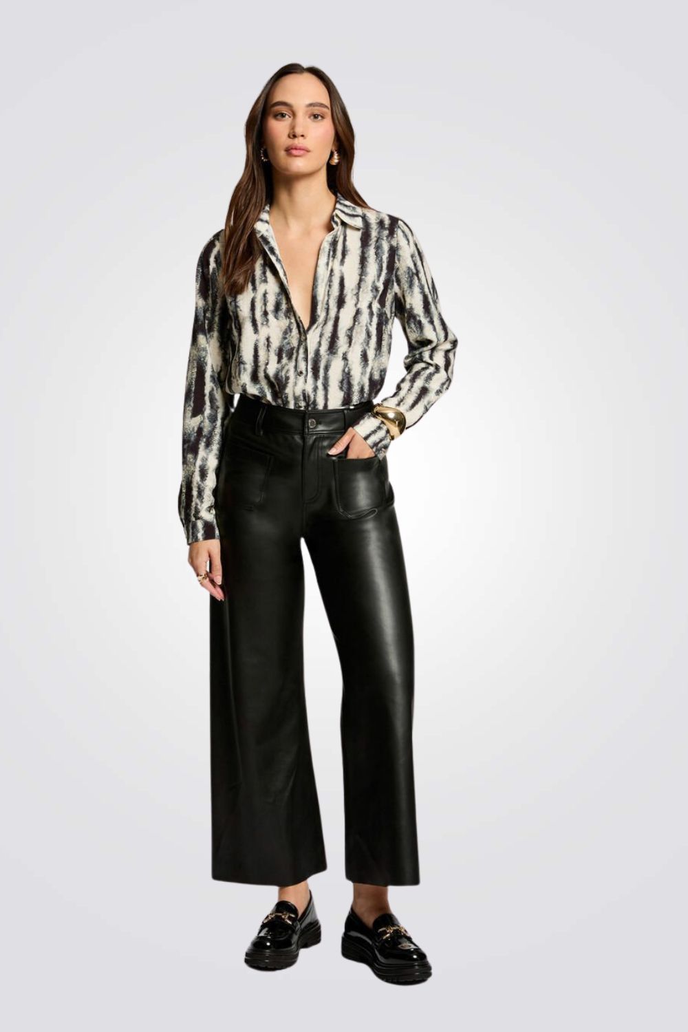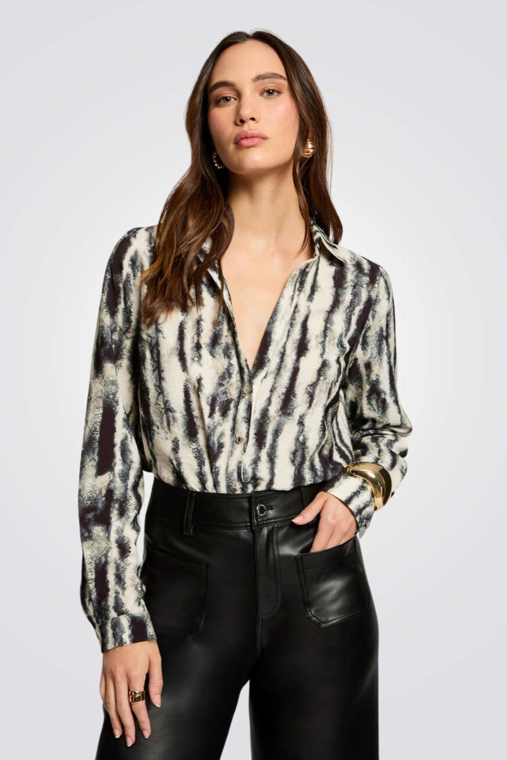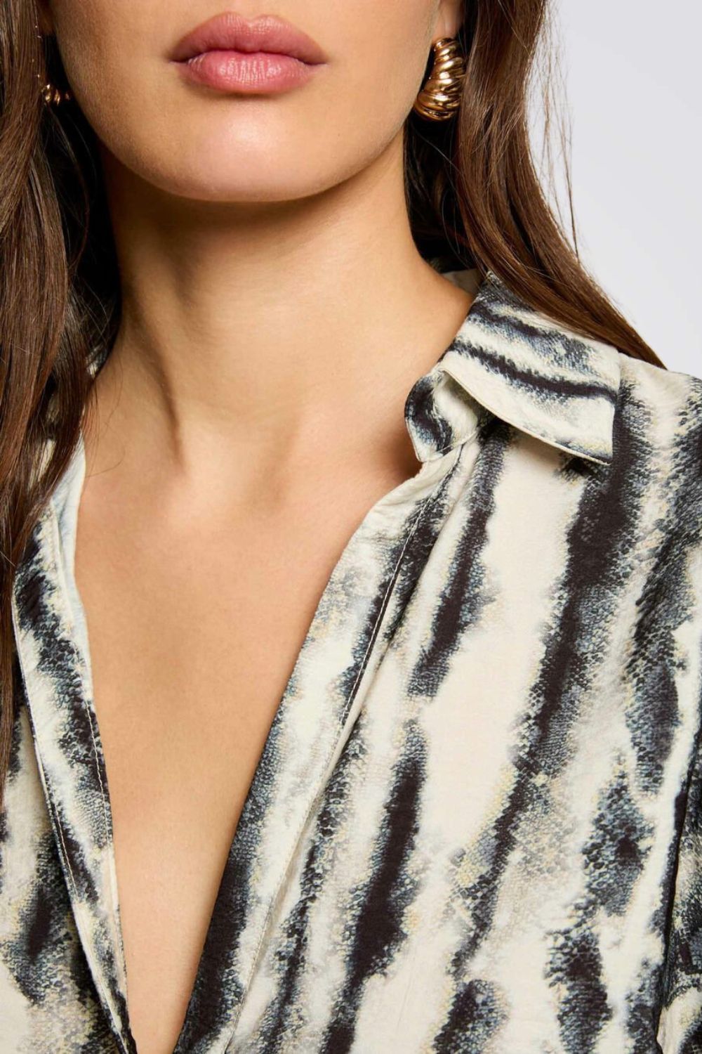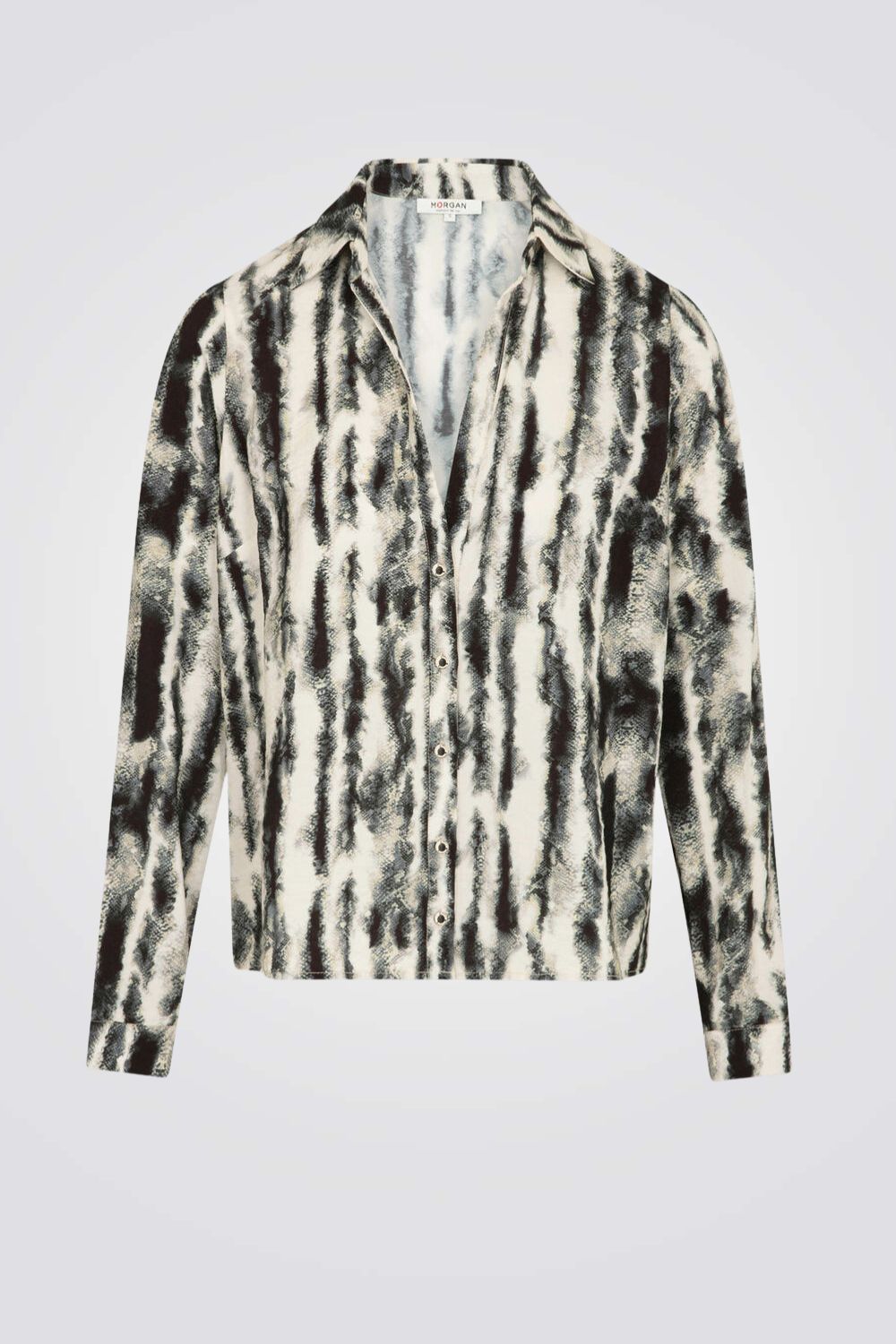 חולצה מכופתרת מבית המותג MORGAN בהדפס, עם שרוולים ארוכים וצווארון וי עמוק.