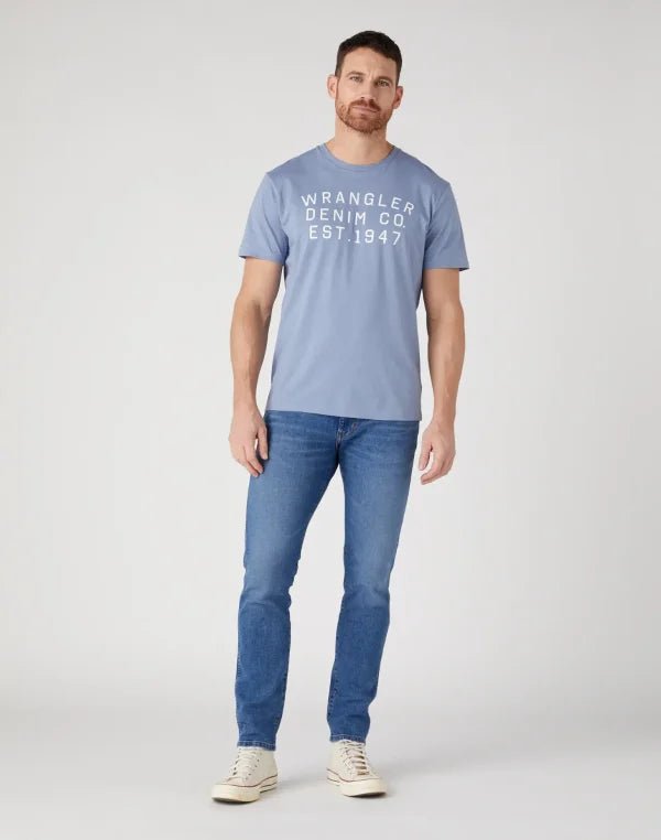 טישירט מבית המותג WRANGLER. טישירט בעלת שרוולים קצרים וצווארון עגול, תוספת רצינית למלתחה אותנטית במיוחד , בהשפעת אמריקנה וינטג', גרפיקה מקורית של המותג