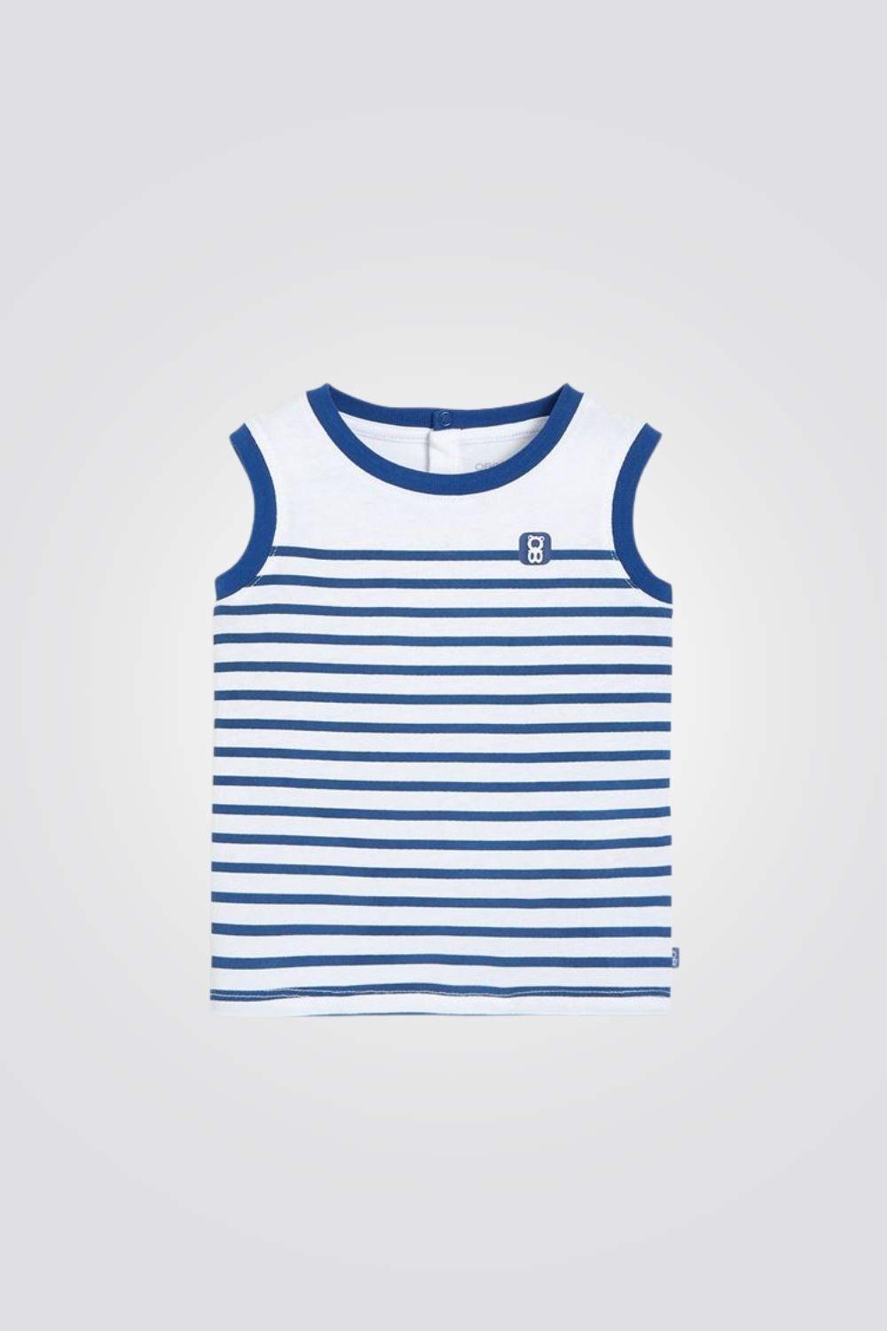 גופיה במוטיב של פסים במגוון צבעים. גופיה לתינוקות לימי הקיץ החמים. של המותג OBAIBI. הרכב בד: 100% כותנה.