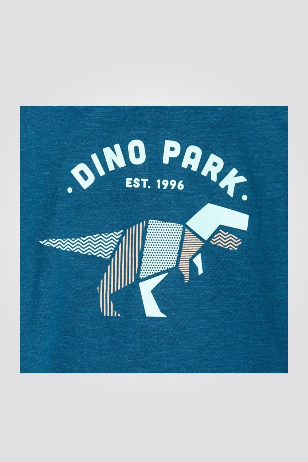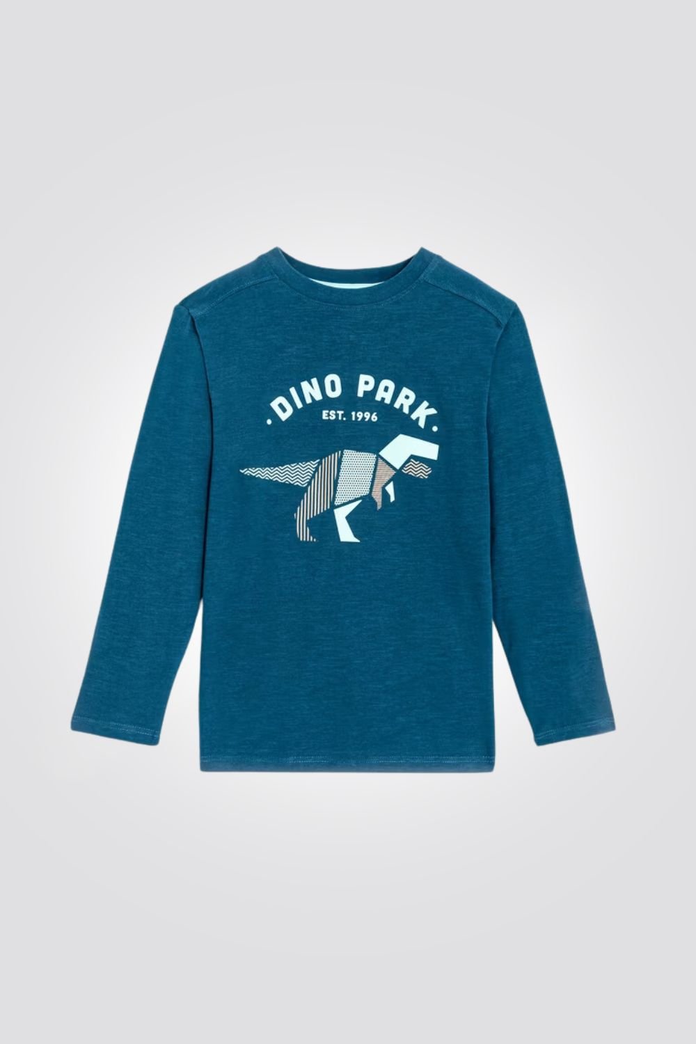 טישירט ילדים שרוול ארוך בצבע כחול עם הדפס דינוזאור כחול