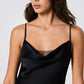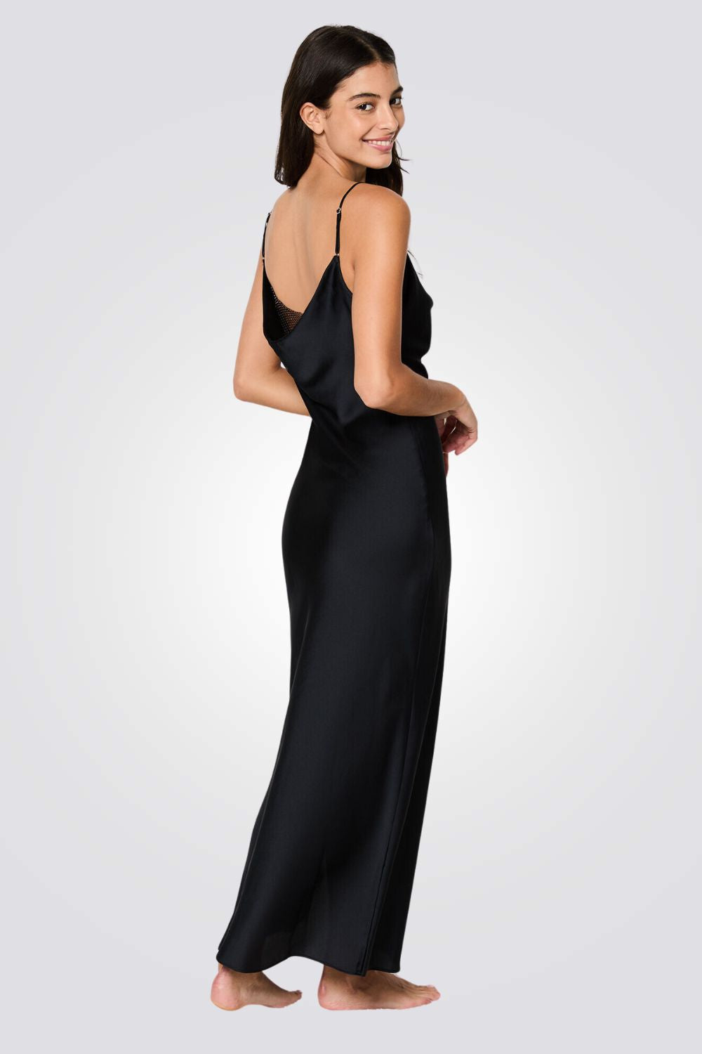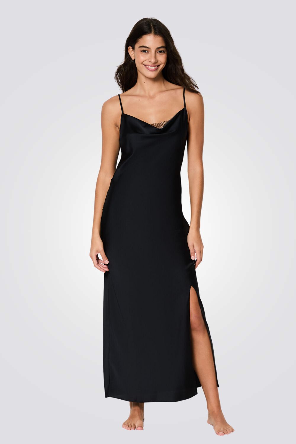 כותונת ארוכה מבית המותג ETAM לנשים בצבע שחור, בעלת כתפיות דקות, בד סאטן רך ונעים וגב פתוח.