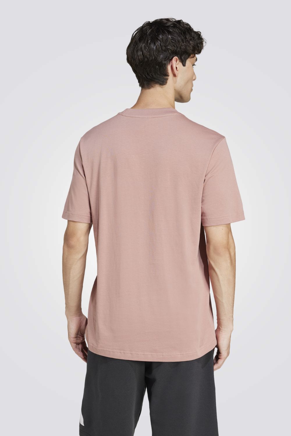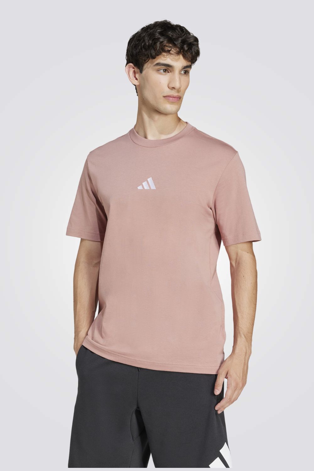 חולצה קצרה מבית המותג ADIDAS לגברים בצבע ורוד, מבד קליל, צווארון עגול וסמל המותג בצבע לבן בקידמת החולצה.