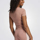 טי שירט קצרה מבית המותג ADIDAS לנשים בצבע ורוד, בעלת בד קליל, צווארון עגול, שרוולים קצרים ושלושה פסים בצבע לבן בצידי החולצה.