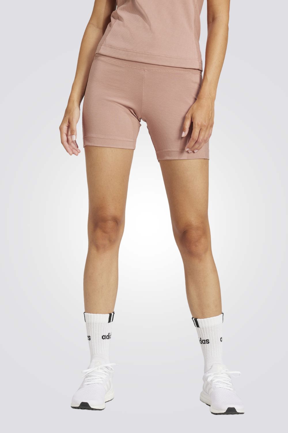 טייץ קצר מבית המותג ADIDAS לנשים בצבע ורוד, בעל בד רך ונעים וסמל המותג רקום בצבע ורוד.