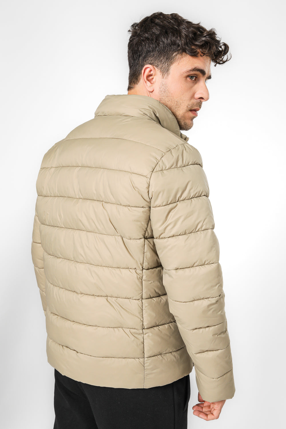 מעיל מרופד בצבע כאמל צווארון גבוה