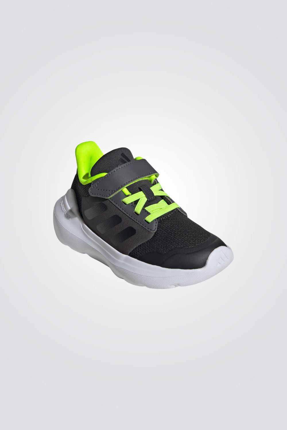 נעלי ספורט לילדים ונוער מבית המותג ADIDAS בצבעי שחור וניאון קלות משקל עם סגירת שרוכים ורצועת סקוץ', גפה רשת סינטטי לאוורור מקסימלי וסוליית EVA משודרגת.