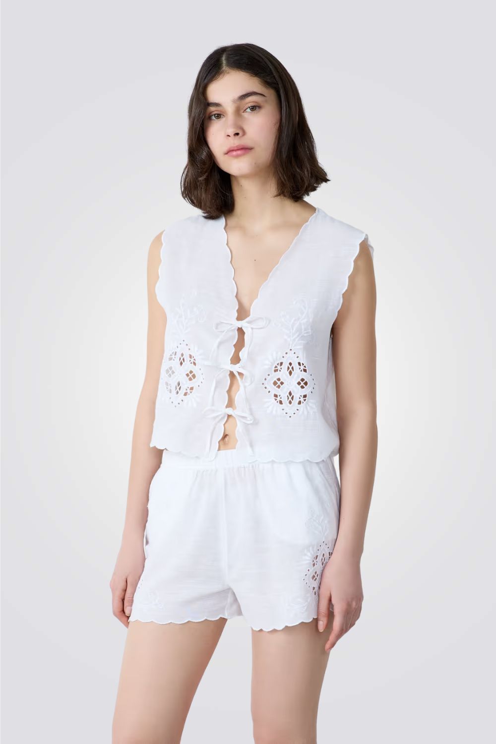 מכנסי פיג'מה קצרים CARLYNE בצבע לבן