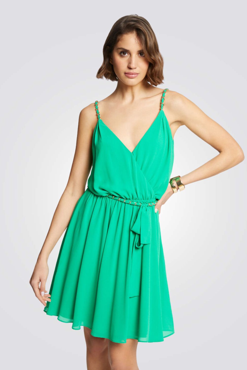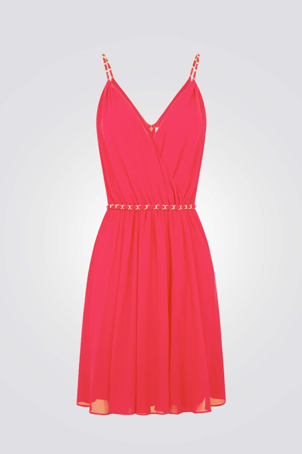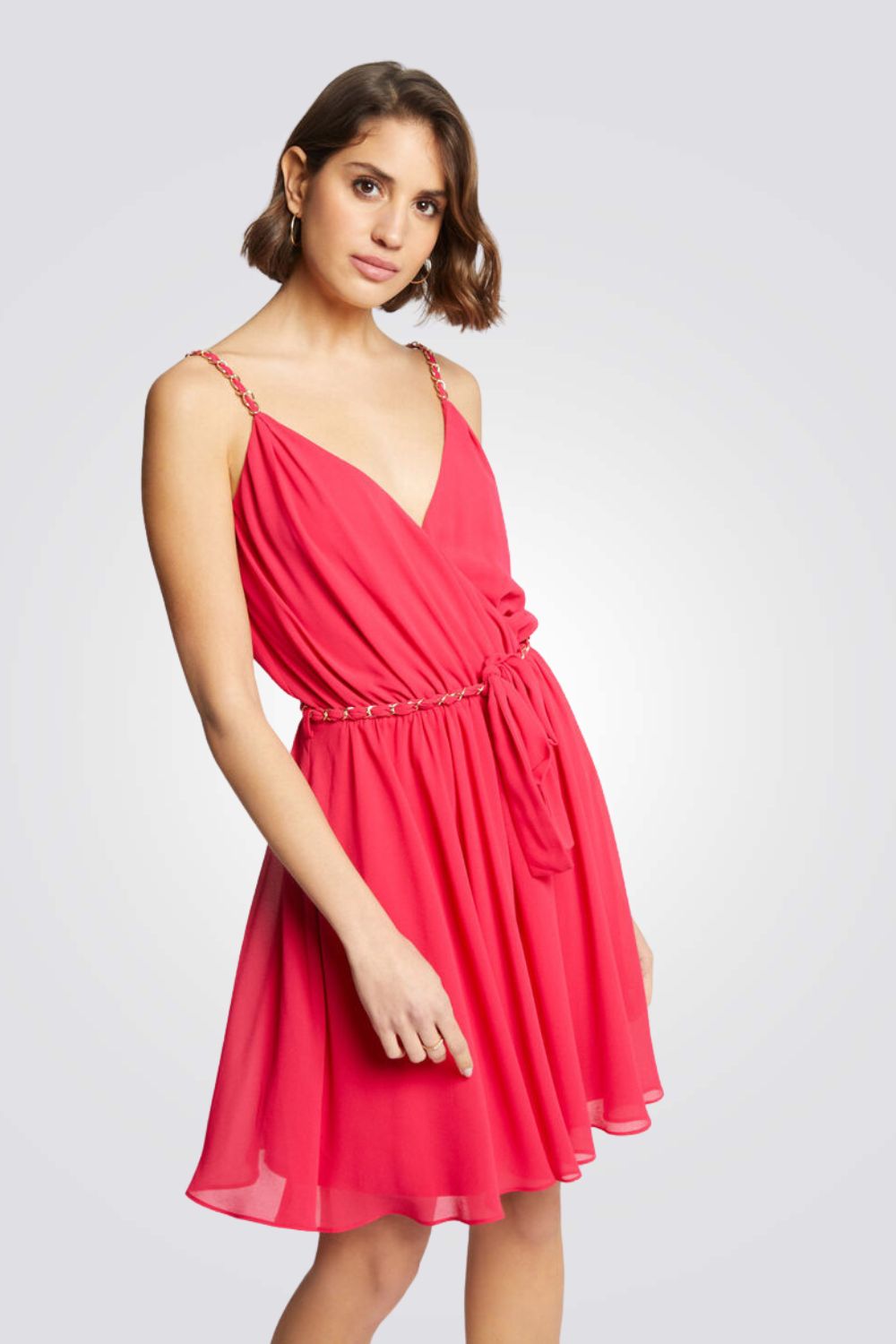 שרשרת מבית המותג MORGAN, גזרה מיני מעטפת עם רצועות דקות וחגורה.