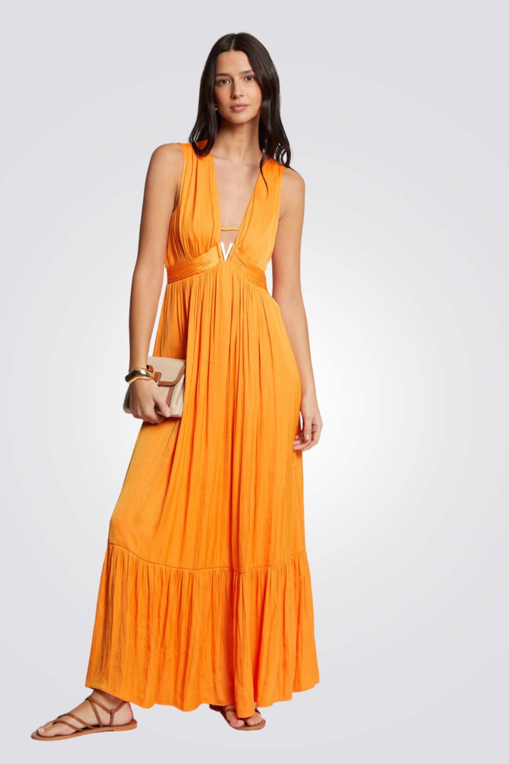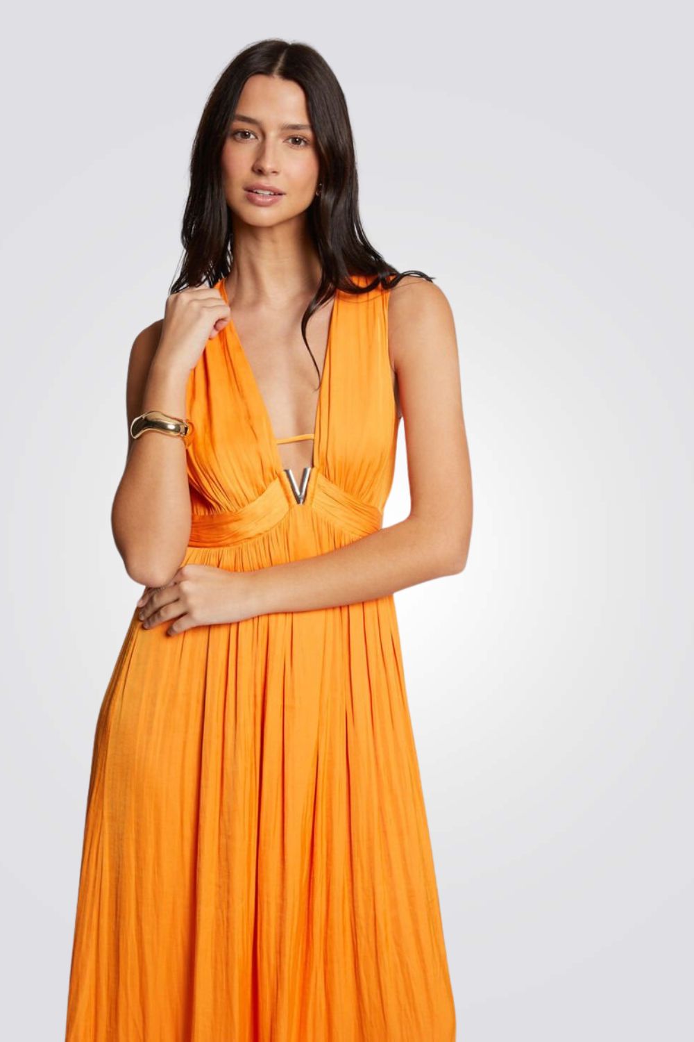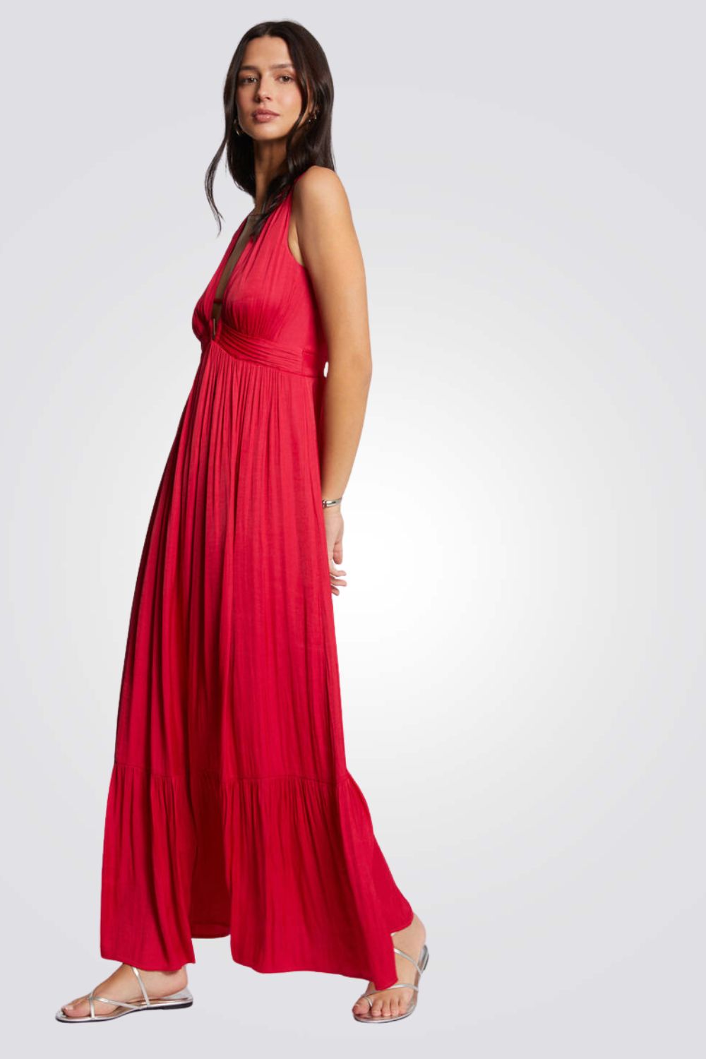 שמלה מבית המותג MORGAN, גזרה מקסי עם עם אבזם V בצבע כסף.