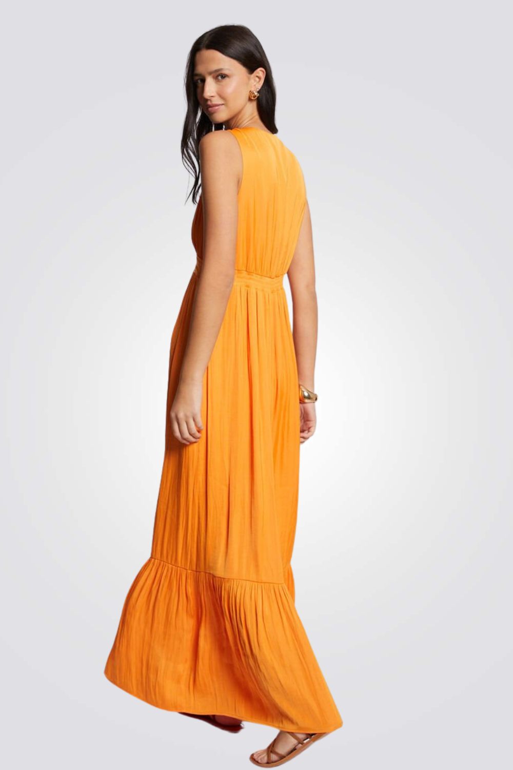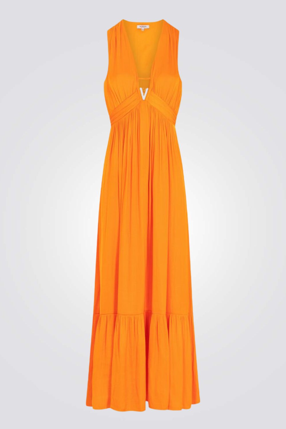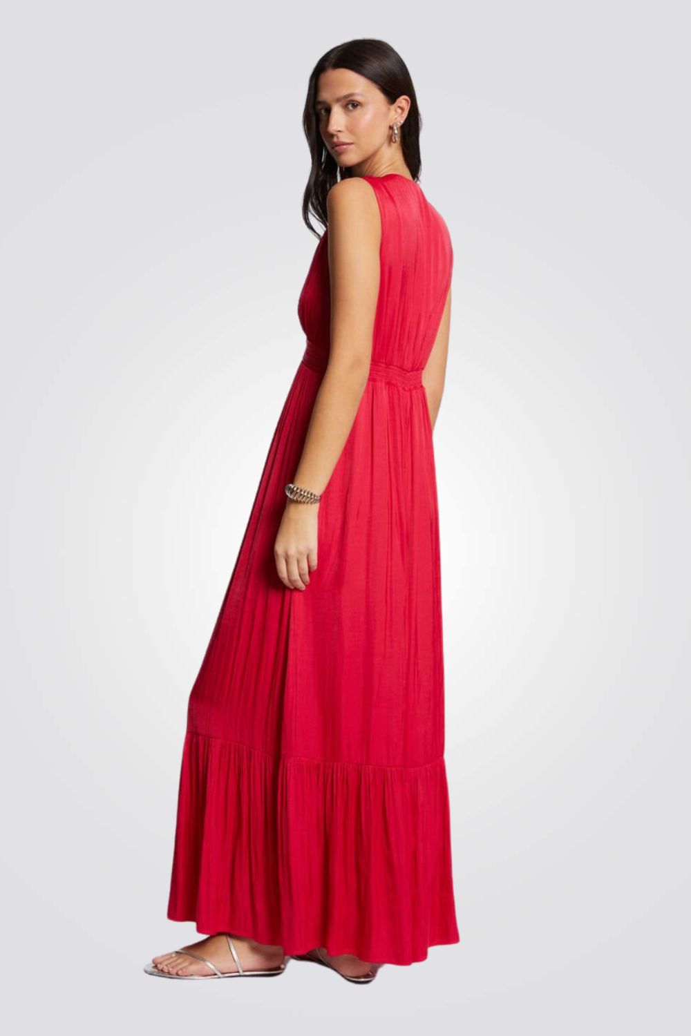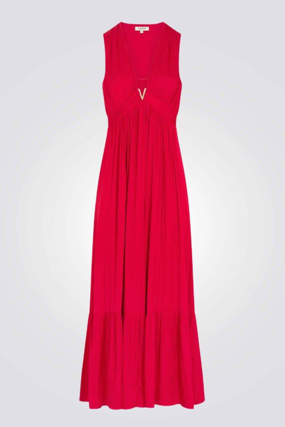 שמלה מבית המותג MORGAN, גזרה מקסי עם עם אבזם V בצבע כסף.