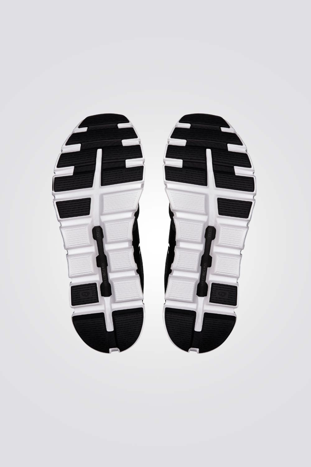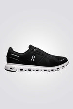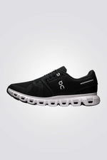 נעלי ספורט מבית המותג On Cloud לנשים בצבע שחור, בעלות סוליית קצף Zero-Gravity המציעה נוחות, גפה רשת לאוורור, שרוכים לקשירה וסל המותג בצידי הנעל.