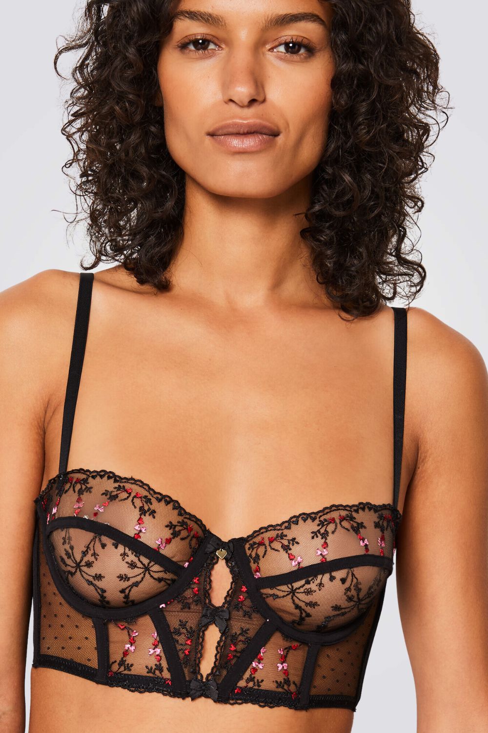 מחוך תחרה וטול מבית המותג ETAM בגוון חצי שקוף ובגזרה מחמיאה, בעל ברזלים לתמיכה מקסימלית ובעיטור פרחוני ומיוחד!