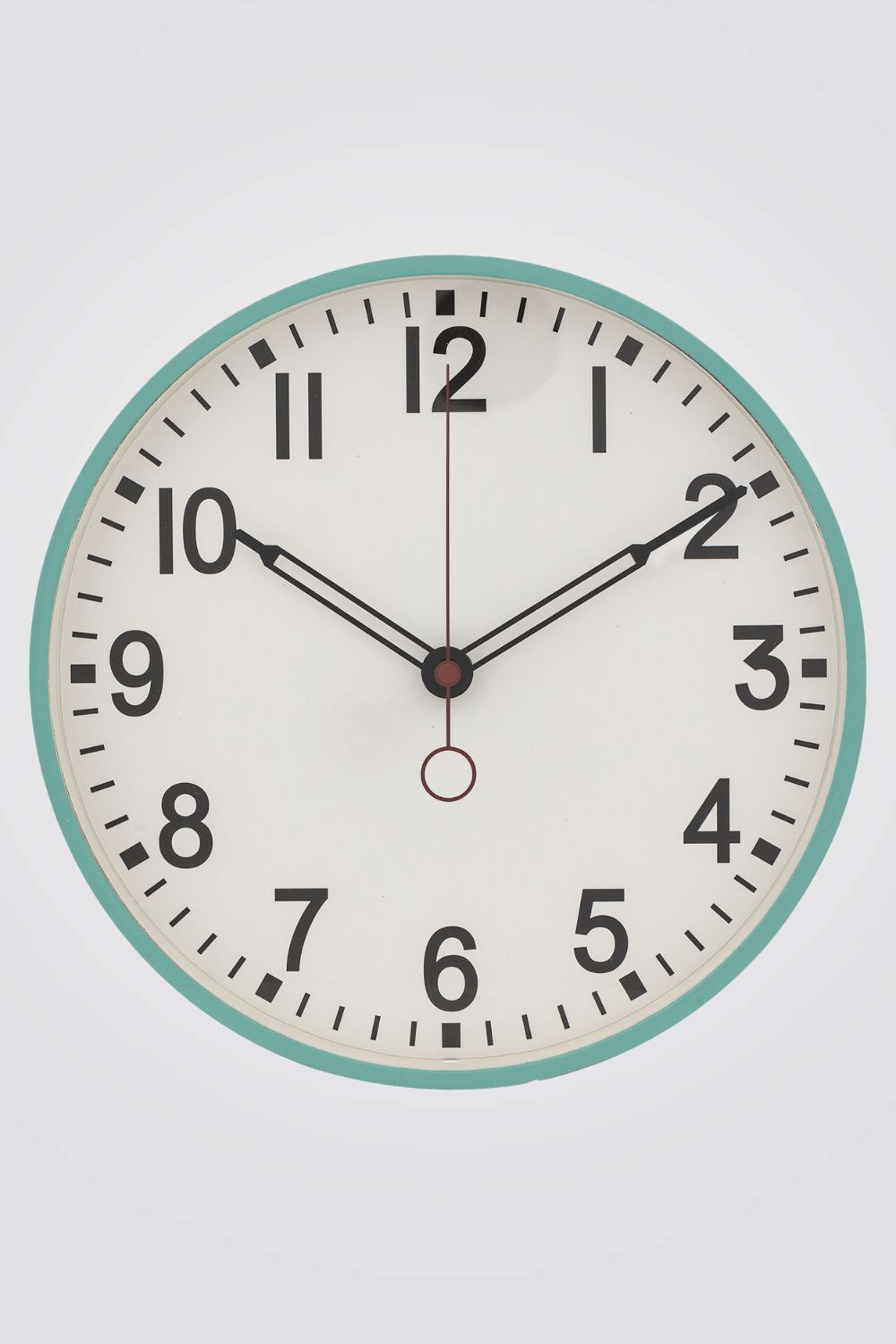 שעון קיר מבית המותג Private Collection, עם מסגרת בצבע ירוק ומחוגים, מתאים לכל מקום בבית .