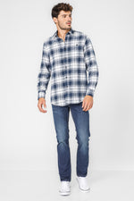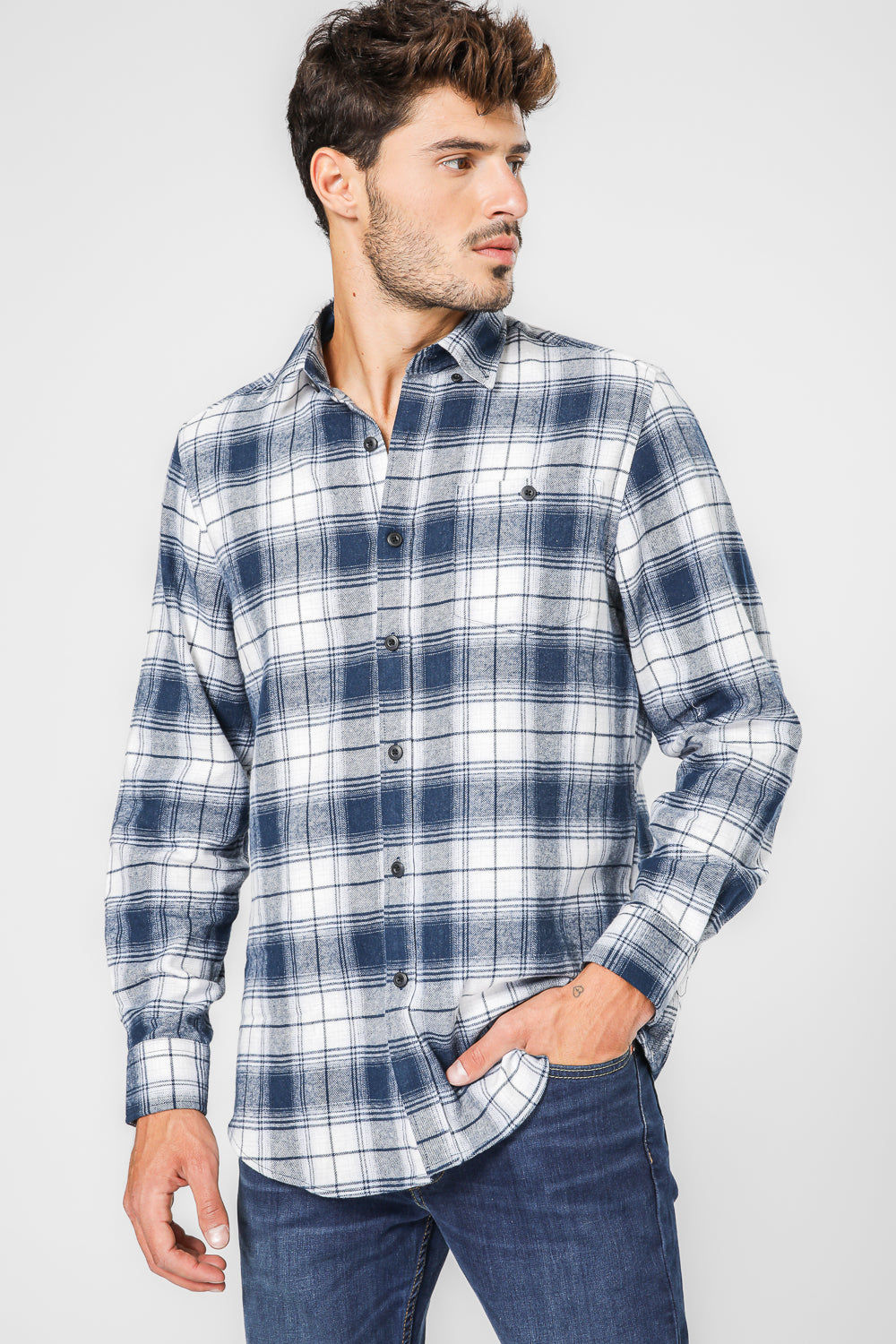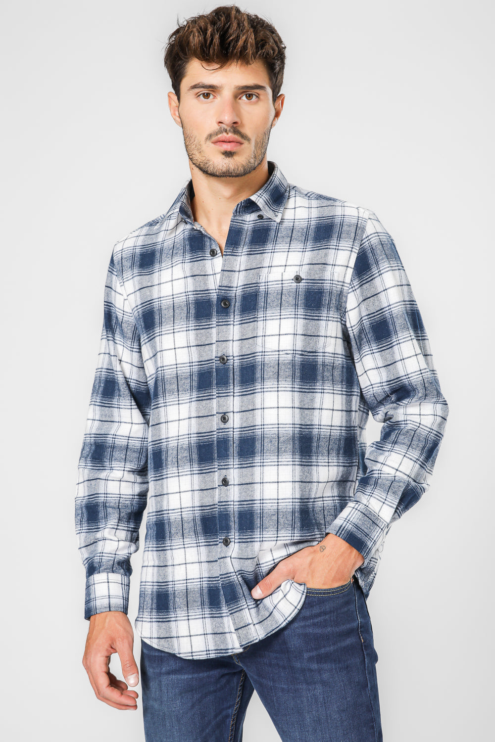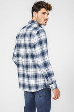 חולצת משובצת פלנל בצבע כחול ולבן
