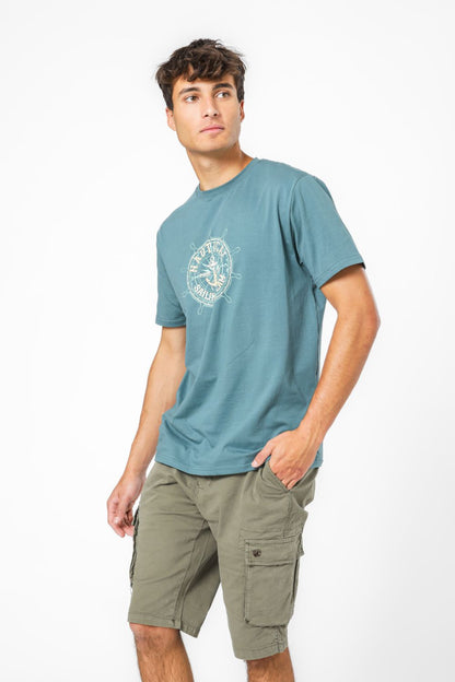 טישירט קצרה מבית המותג SCORCHER לגברים, מבד קליל, צווארון עגול ומעוצבת עם הדפס בקידמת החולצה.