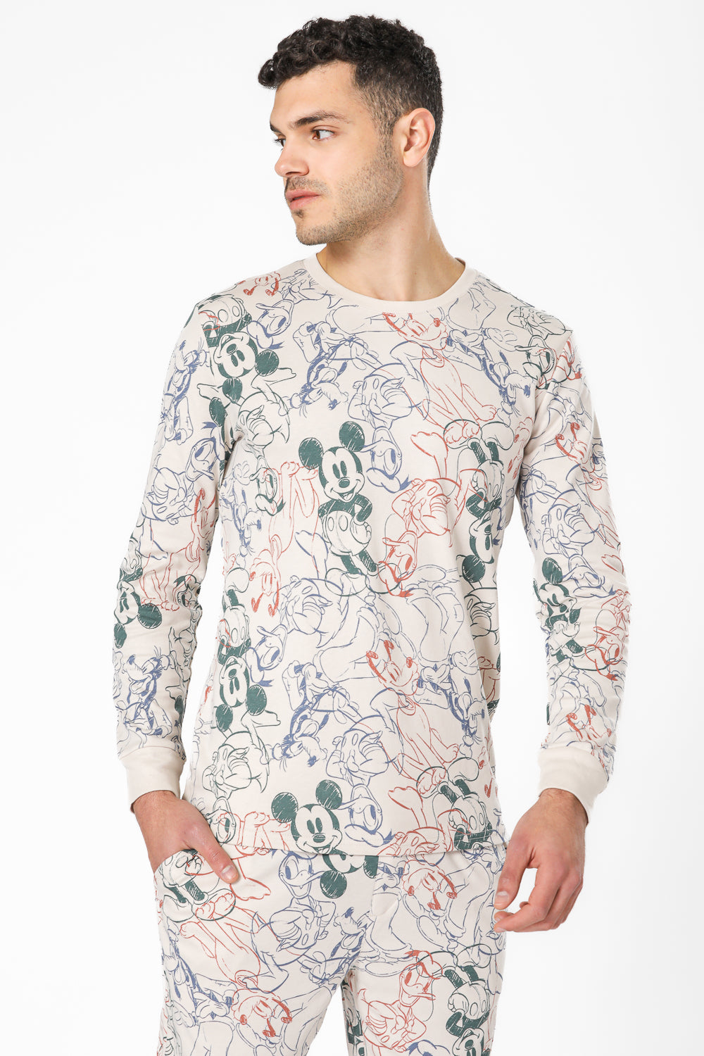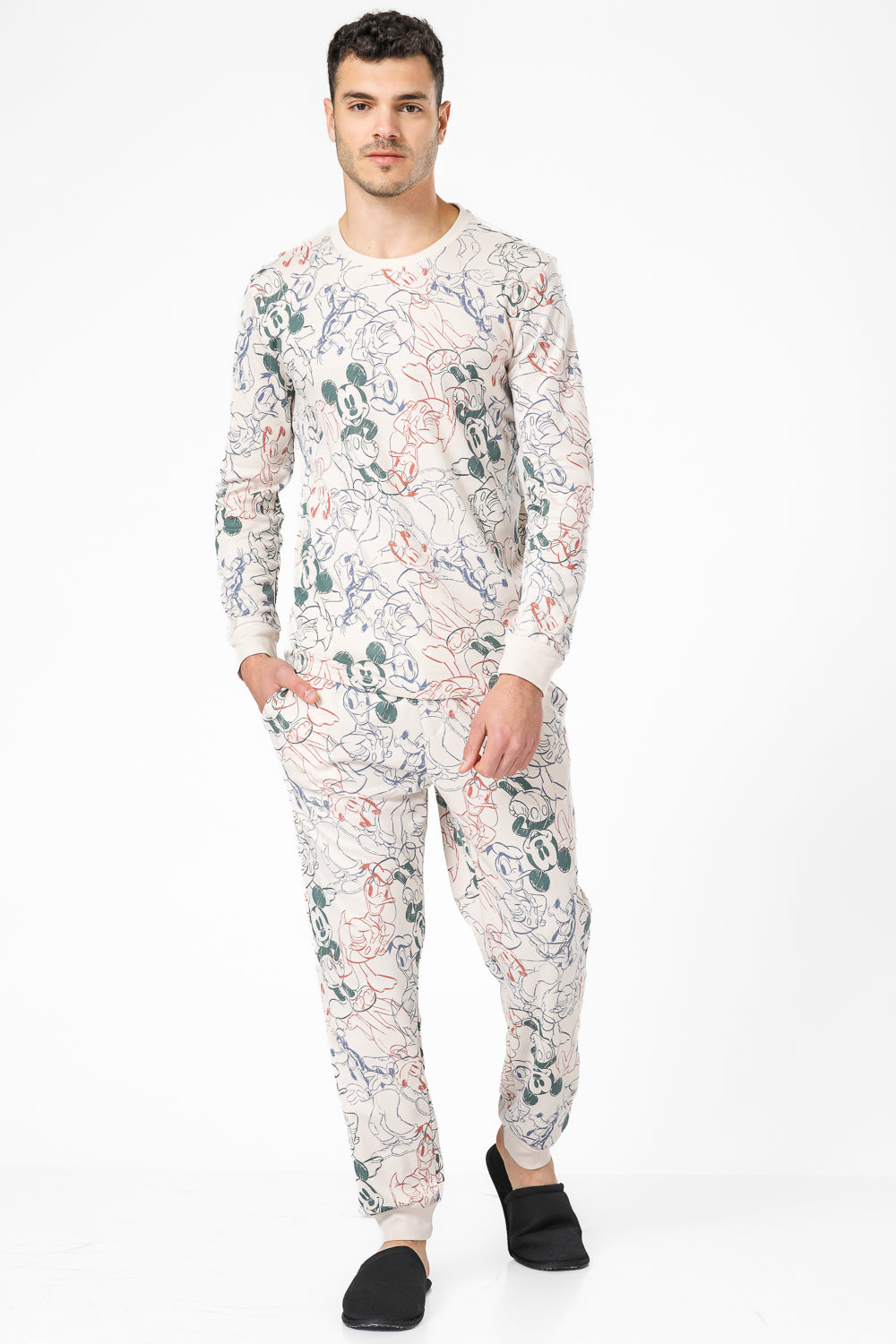 סט פיג'מה לגברים ונשים מבית המותג DISNEY העשוי מבד אינטרלוק נעים ודק לעונת המעבר עם הדפס של מיקי מאוס וחברים. חולצה עם צווארון עגול ושרוולים ארוכים עם סיומת מנג’ט ומכנסיים ארוכים עם גומי במותניים, כיסים וסיומת מנג’ט.