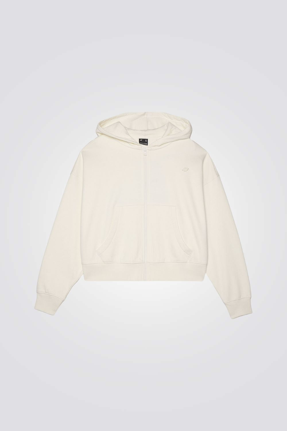 סווטשירט קפוצ'ון לנשים מבית המותג F4, מחמם ונעים בצבע שמנת , עם כיס קנגרו.