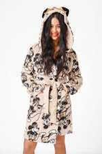 חלוק בית מפנק מבד פרוותי נעים ורך במיוחד עם כובע קפוצ’ון עם אוזני מיקי מאוס, חגורת קשירה למותניים וכיסים לנוחות מירבית.