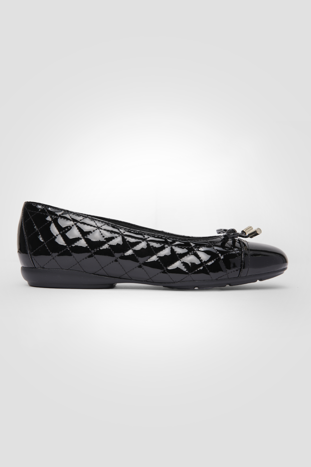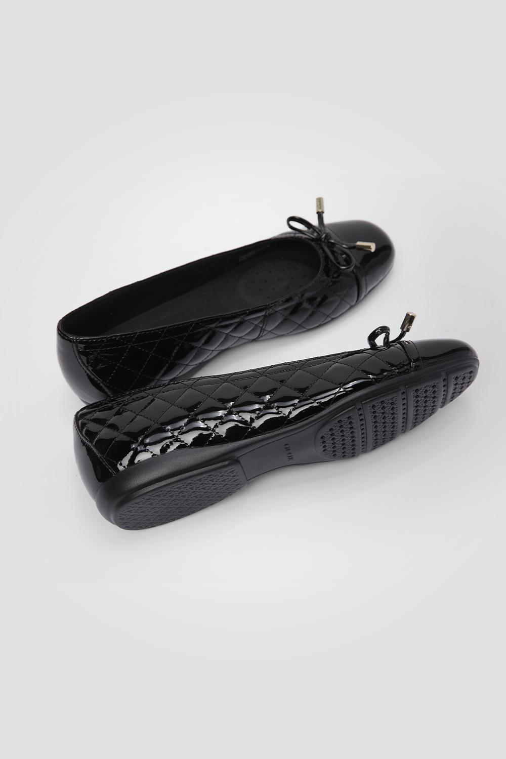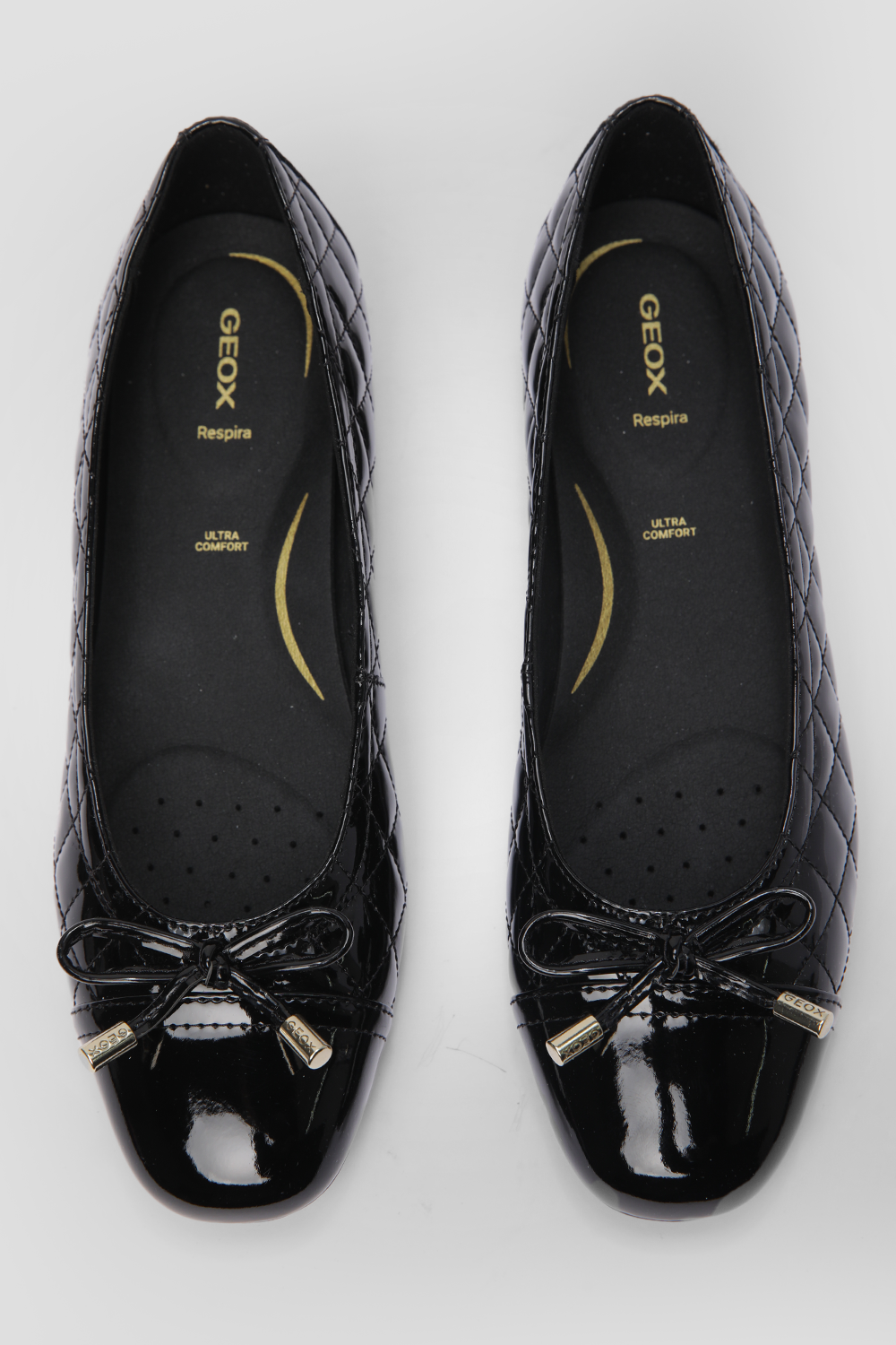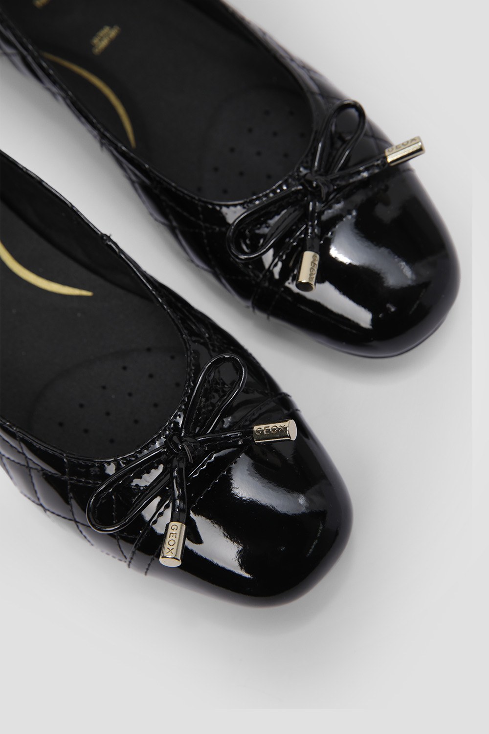 נעלי בובה לנשים מבית המותג GEOX, בסגנון מרופד ובגימור מבריק, קלות משקל, עם עיטור פפיון, נוחות ואידיאליות ליומיום.