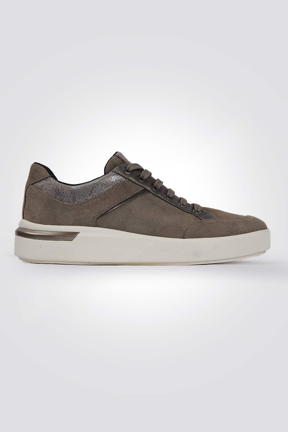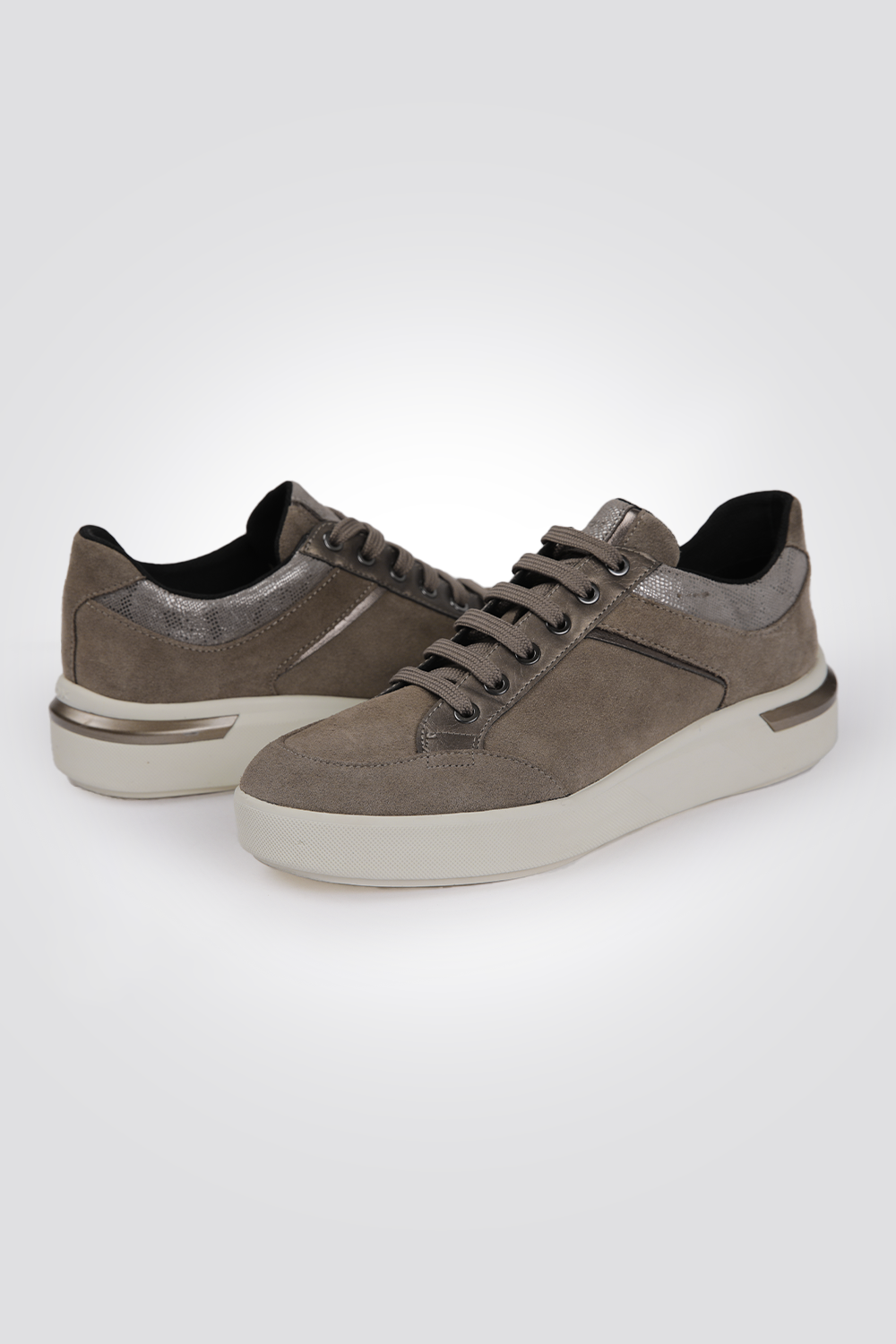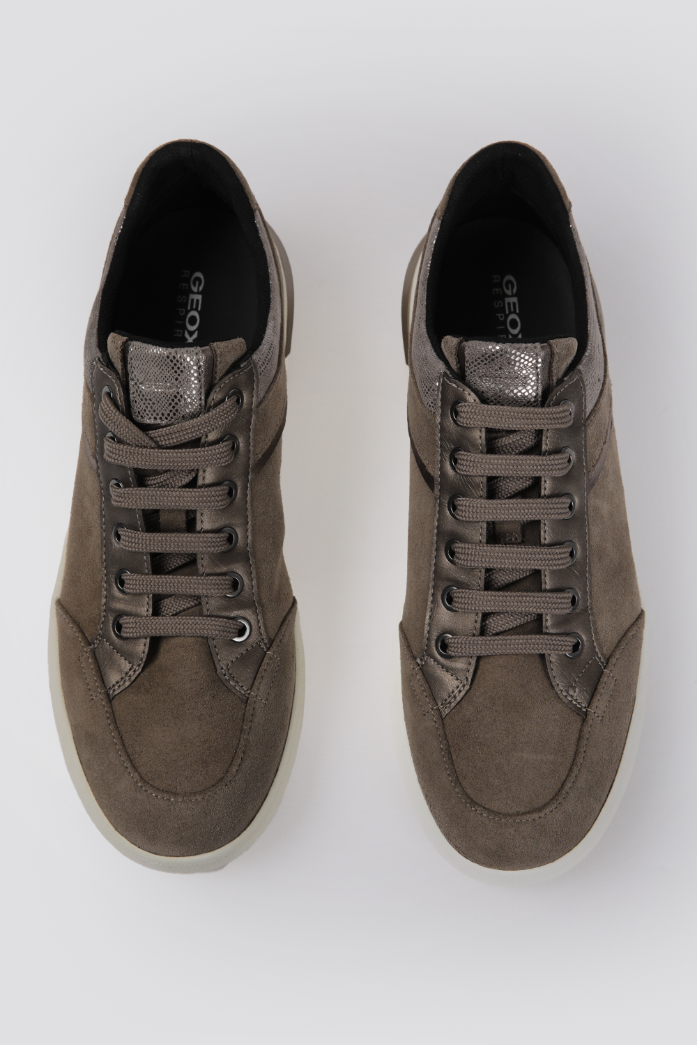 נעלי סניקרס מבית המותג GEOX בצבע בז' כהה עם שרוכים וסוליה נושמת בטכנולוגיית המותג.