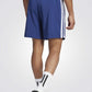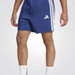 מכנס ספורט קצר מבית המותג ADIDAS לגברים בצבע כחול, בעל גומי אלסטי באיזור המותניים ושרוך לקשירה ושלושה פסים בצבע לבן בצידי המכנס.