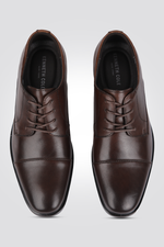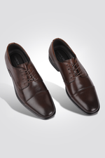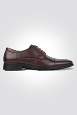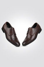 בעל חרטום עגול, עקב קטן ושרוכים דקורטיביים בחלקה העליון של הנעל.
