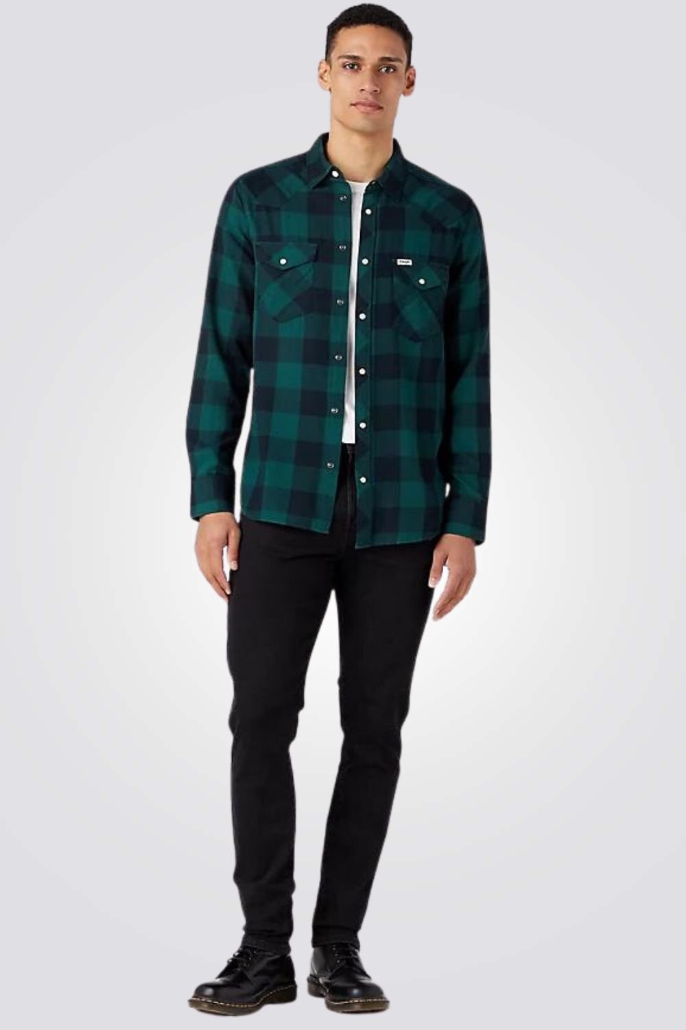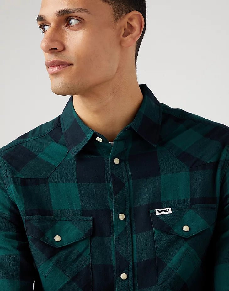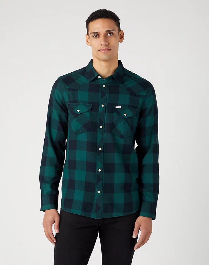 חולצה מכופתרת LS WESTERN בצבע ירוק ושחור
