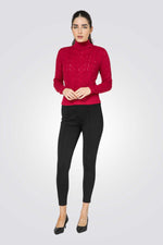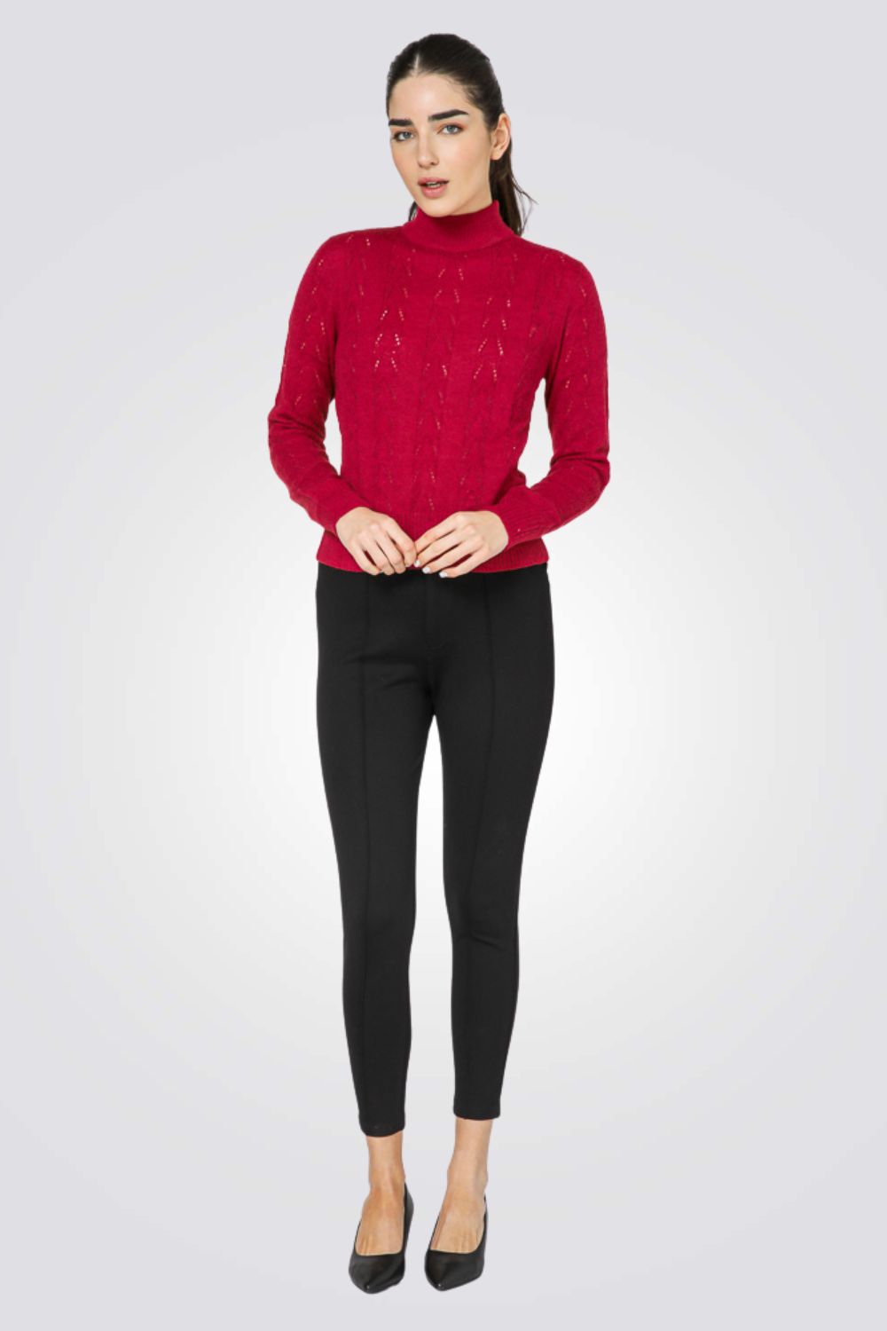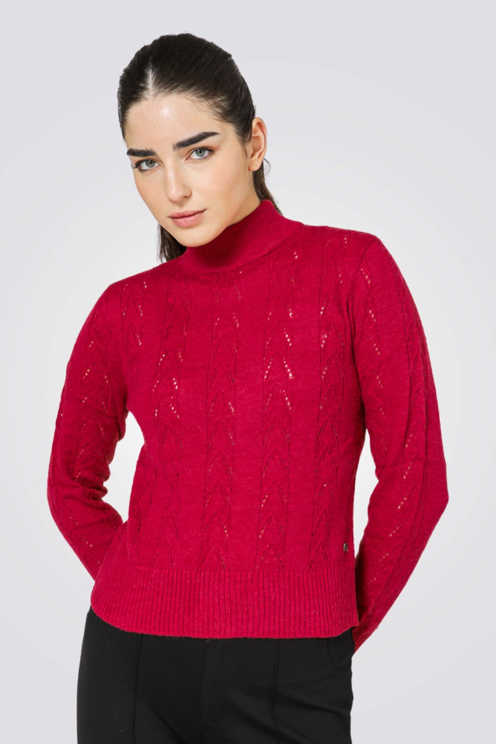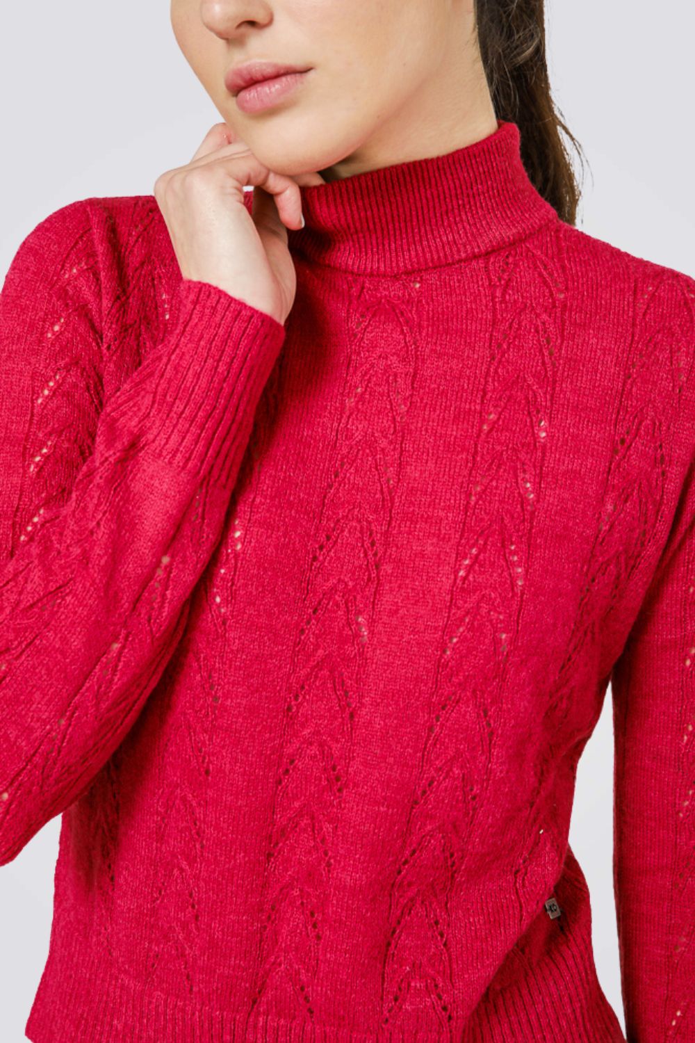סריג גולף מבית המותג KENNETH COLE לנשים בצבע ורוד, עשוי מבד סרוג מחמם ונעים למגע, מתאים ללבישה לימים הקרים, מכיל שרוולים ארוכים, צווארון גולף מחמם, מעוצב עם טקסטורת צמות ובעל סיומת ריב בקצה השרוולים, הסריג והצווארון.