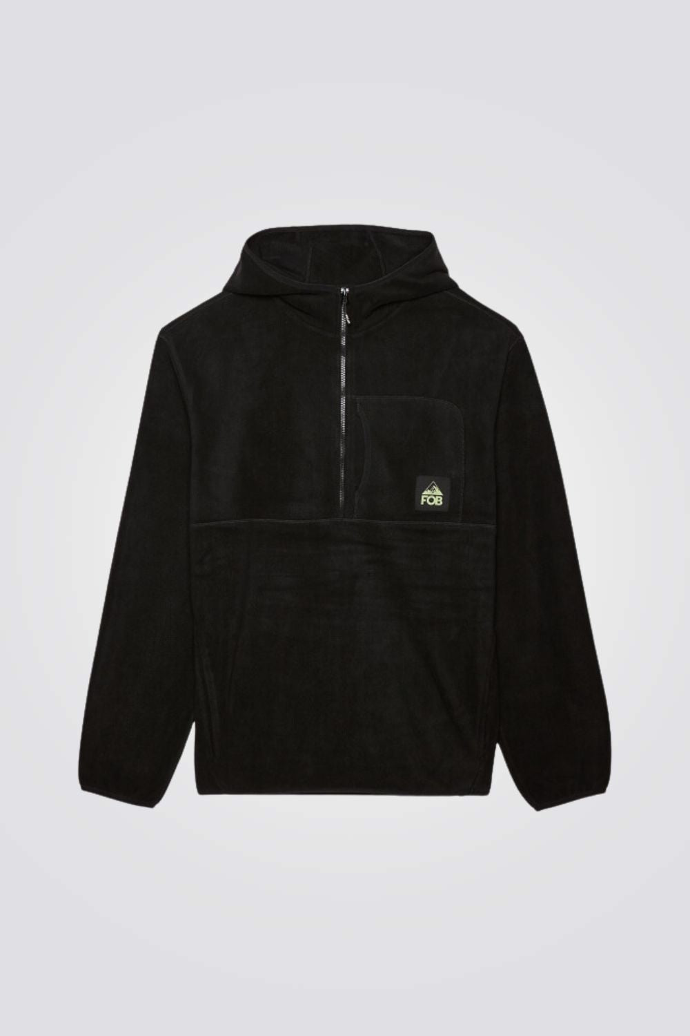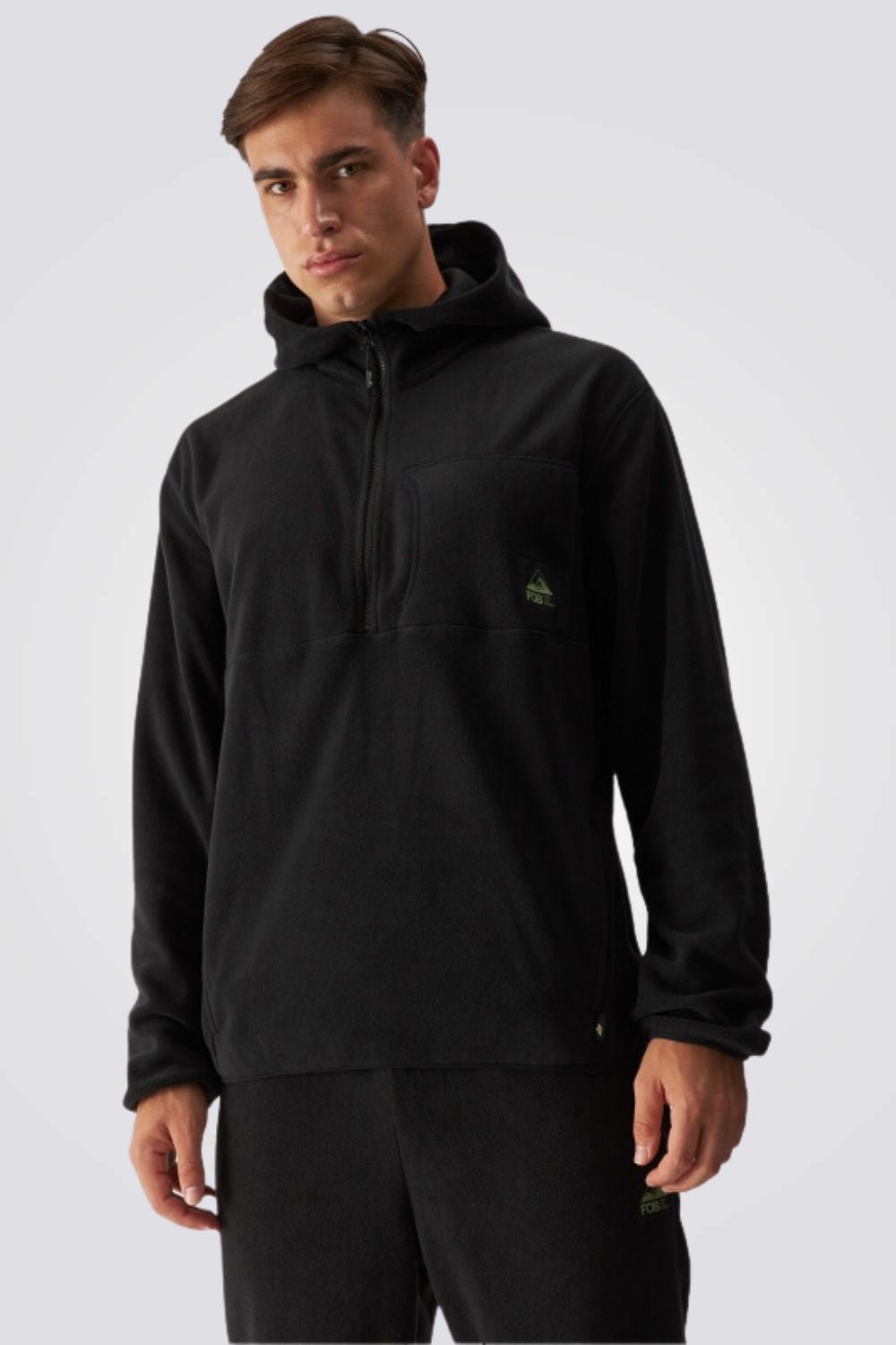 סווטשירט לגברים מבית המותג F4, בצבע שחור , מחמם ונעים עשוי מפליז, בגזרה נוחה , עם סגירת רוכסן מאמצע הסווטשירט.