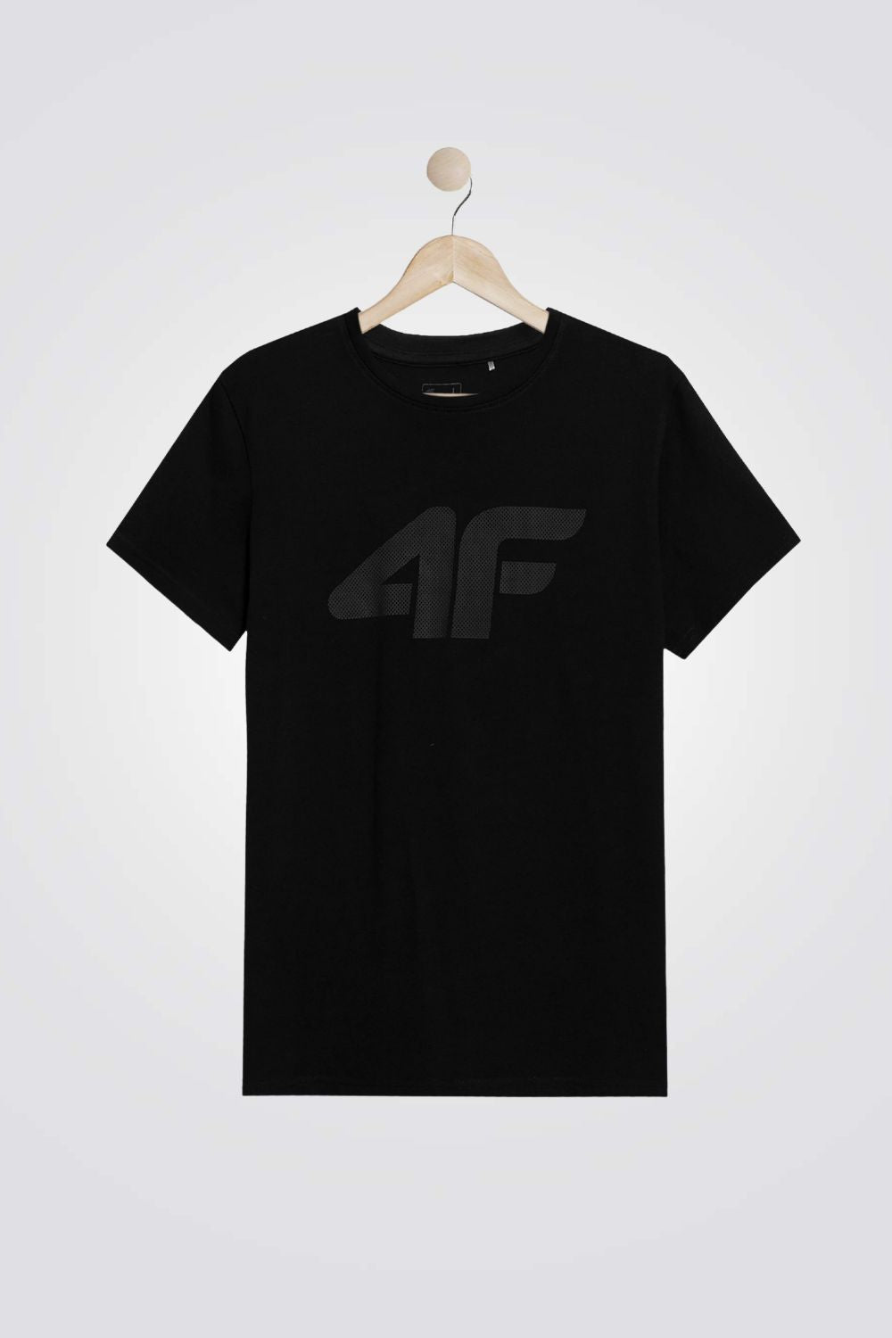 חולצת טישירט מבית המותג 4F בצבע שחור עם הדפס לוגו בחזית החולצה, צווארון עגול ושרוולים קצרים.