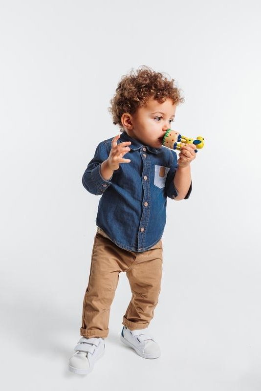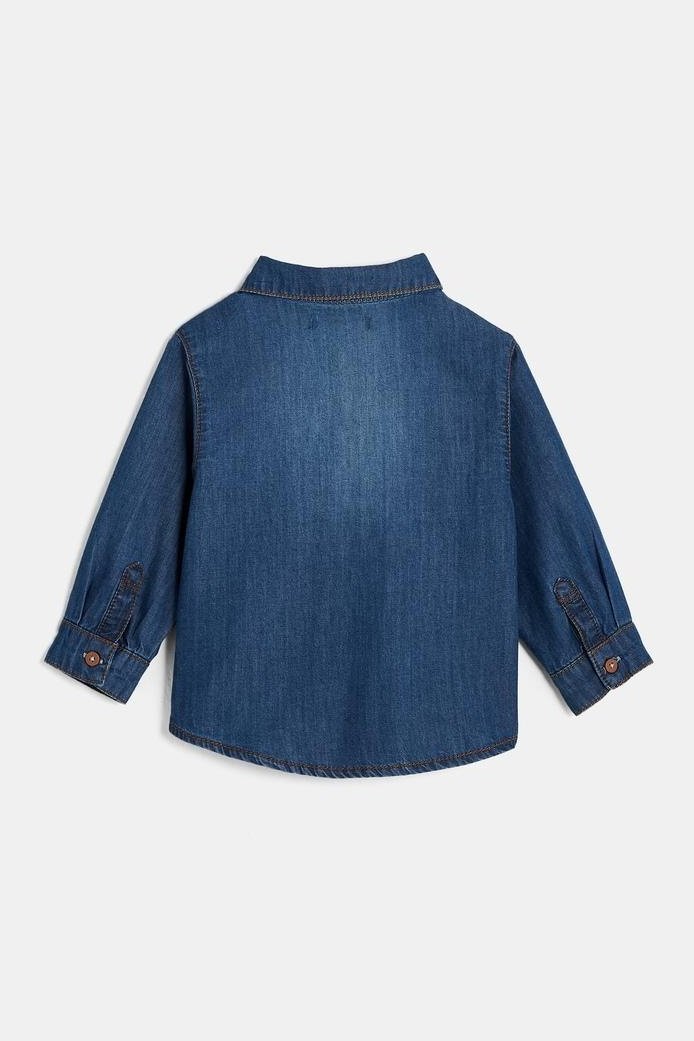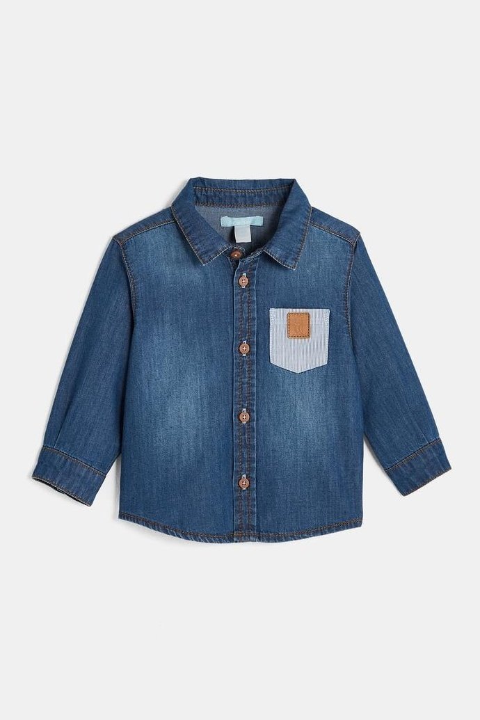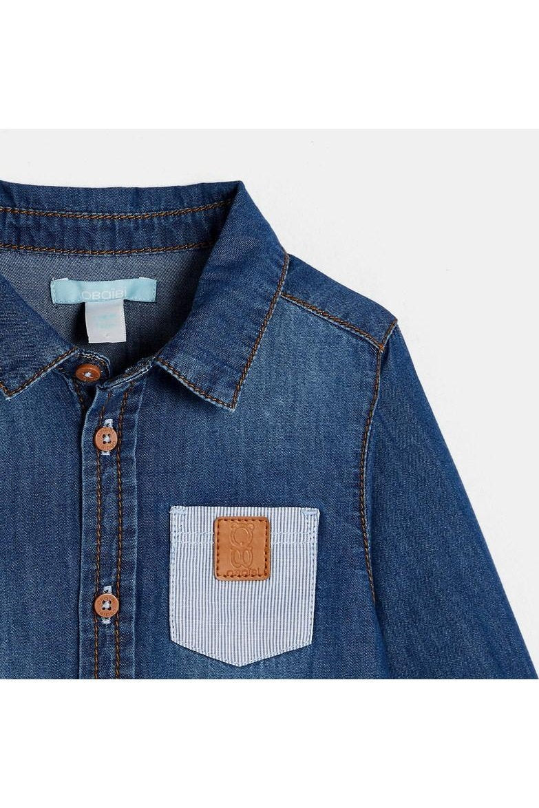 חולצת ג'ינס מכופתרת לתינוקות מבית המותג OBAIBI. לחולצה שרוולים ארוכים מכופתרים, צווארון, וכיס דש קדמי עם לוגו המותג. הרכב הבד: 100% כותנה.