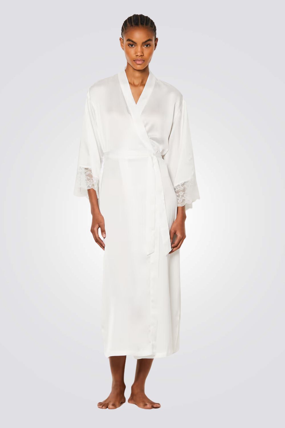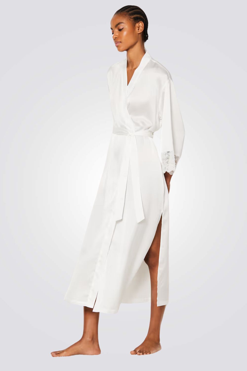 חלוק סאטן ארוך DESIRE בצבע לבן
